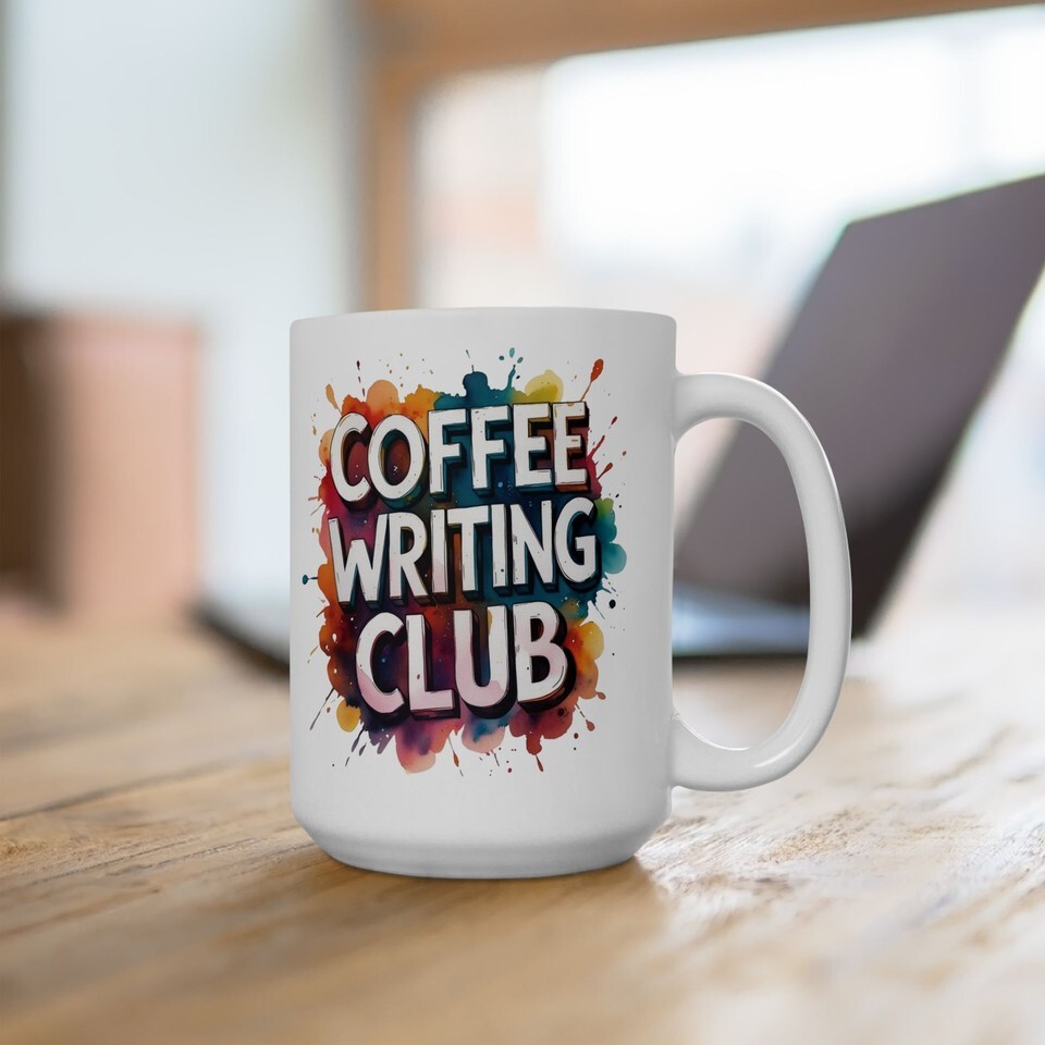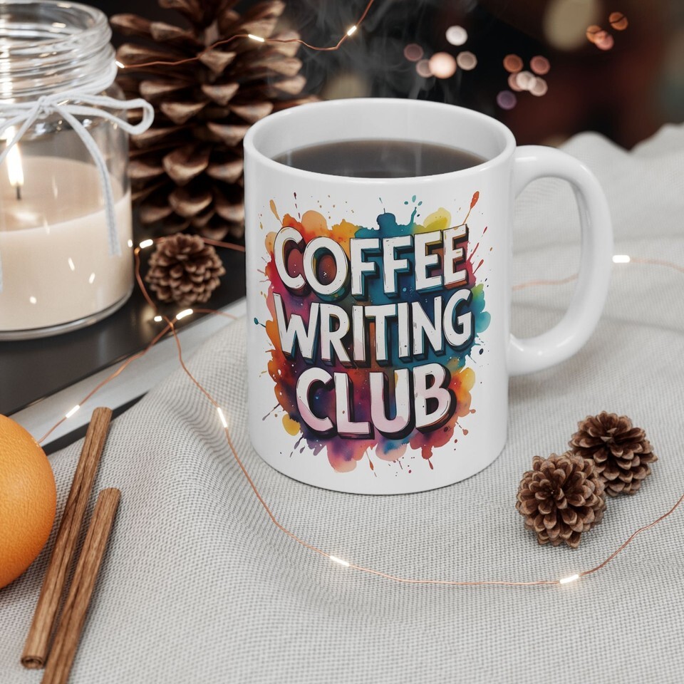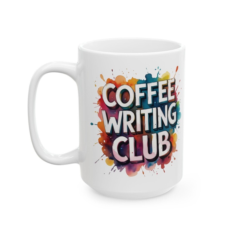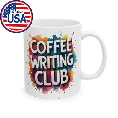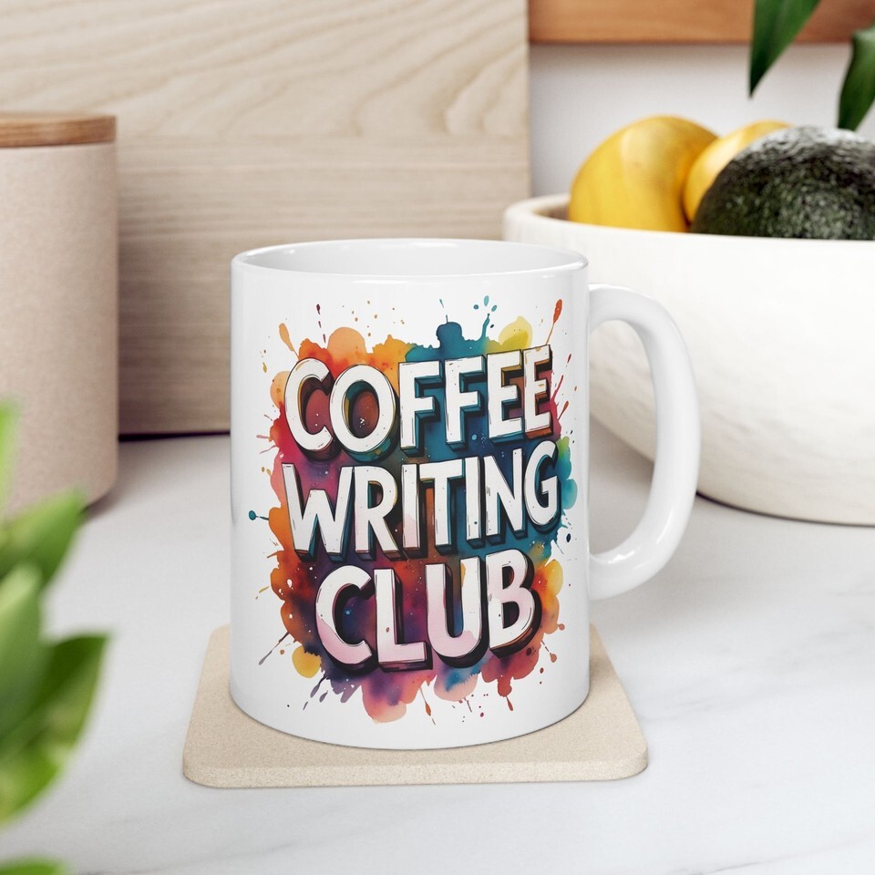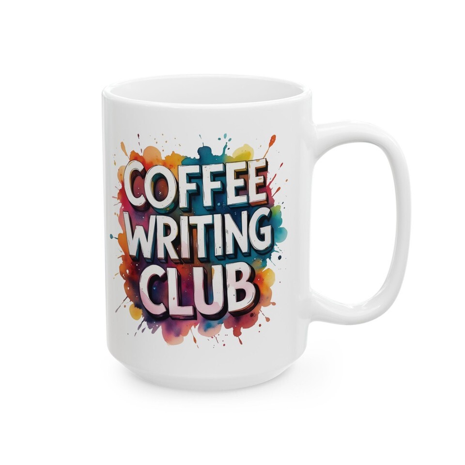 Coffee Writing Club Mug – Colorful Paint Splash Art Ceramic Coffee Cup Gift