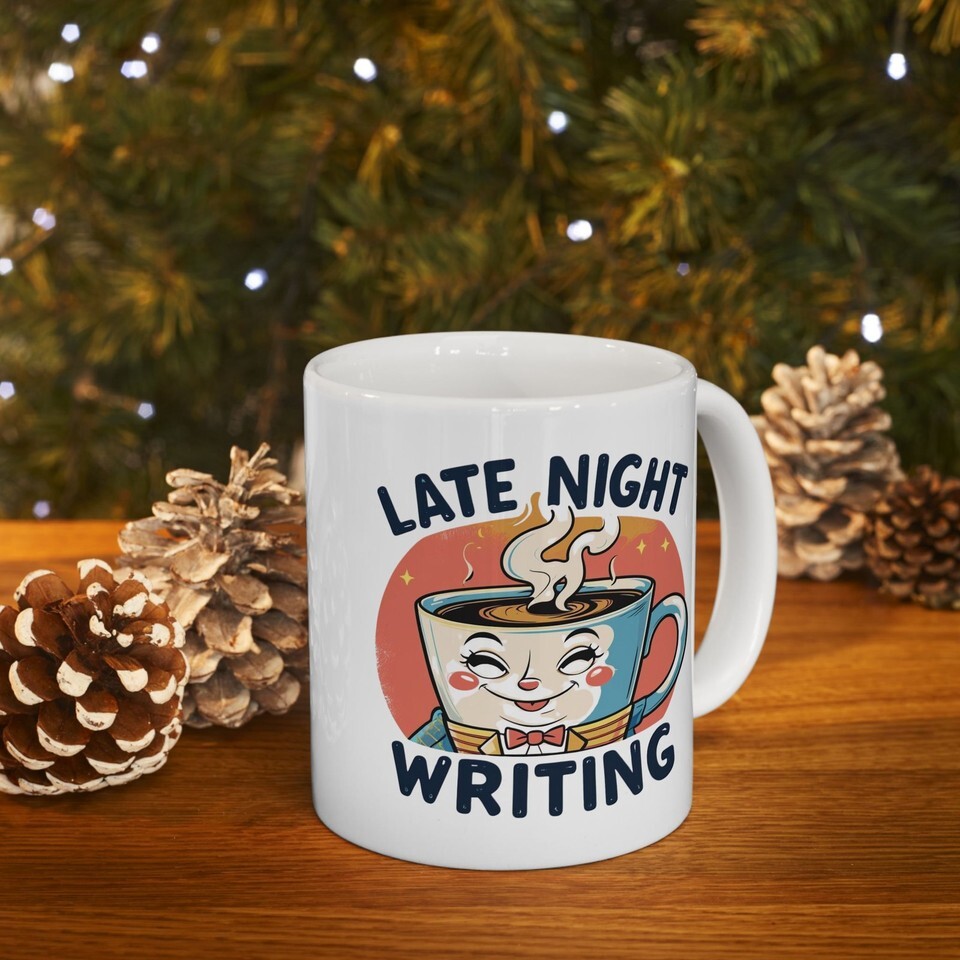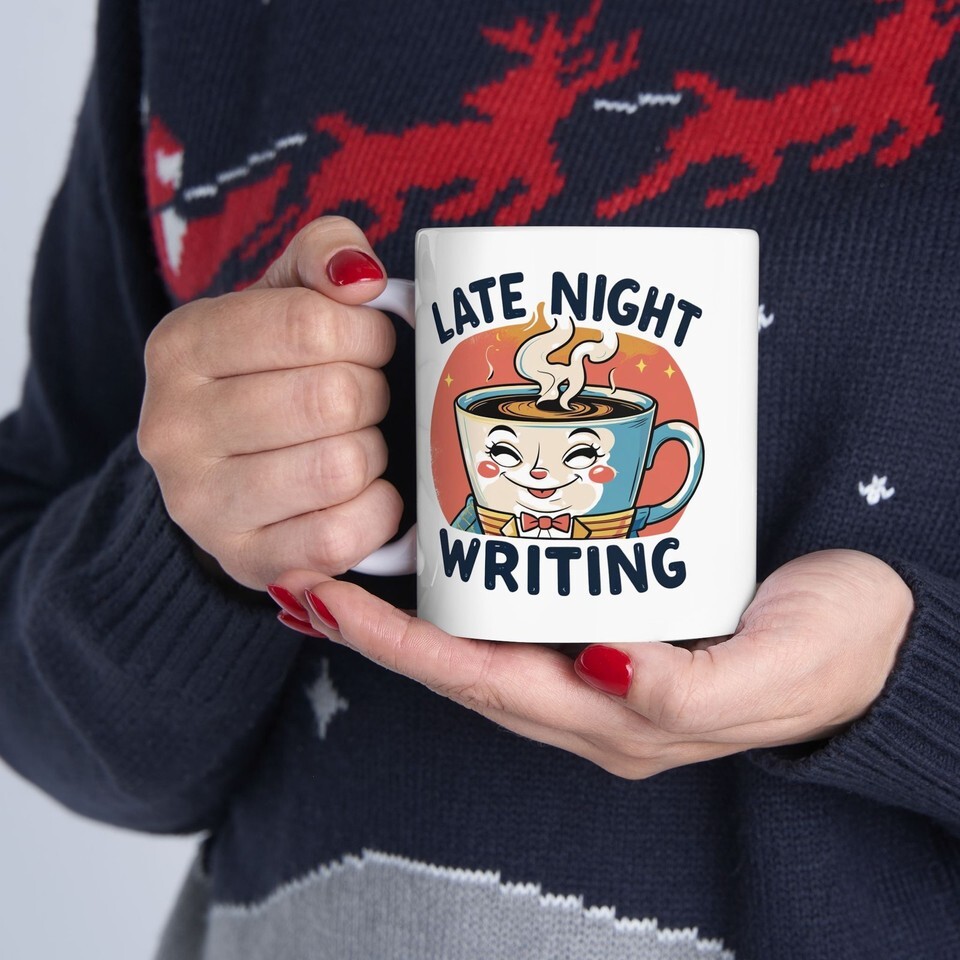 Latte Night Writing Mug Cute Coffee Cup Funny Writer Gift Book Lover Author Mug