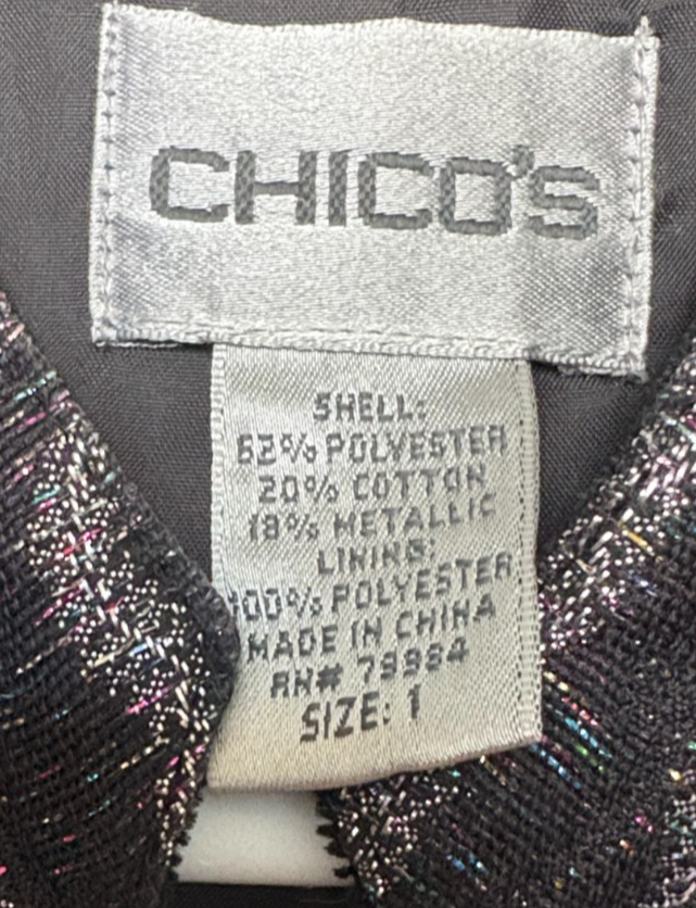 Chico's Textured Black and Gray Metallic Blazer Size 1
