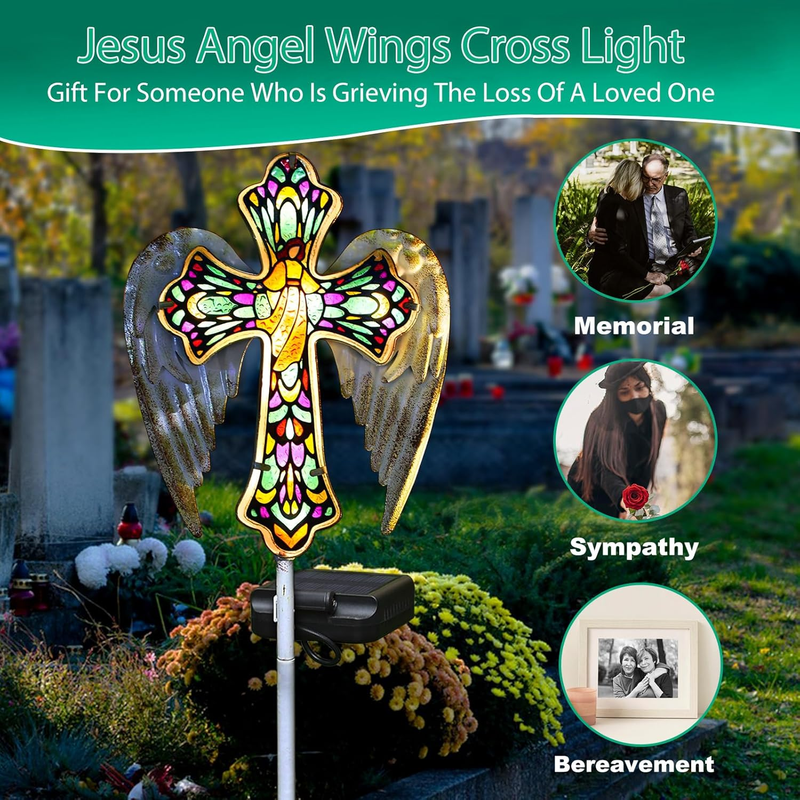 Express Your Love and Memory: The solar memorial crosses can be used as grave decorations for cemetery and halloween grave cemetery decorations, Place it next to the tombstone of your loved one or pet to express your thoughts and love for them, solar angel cross for cemetery show your memory of someone, this solar glass angel cross yard garden stake lights is a symbol of faith, a sacrifice that was made,love and much more. Perfect Gift For Someone Who Is Grieving The Loss Of A Loved One