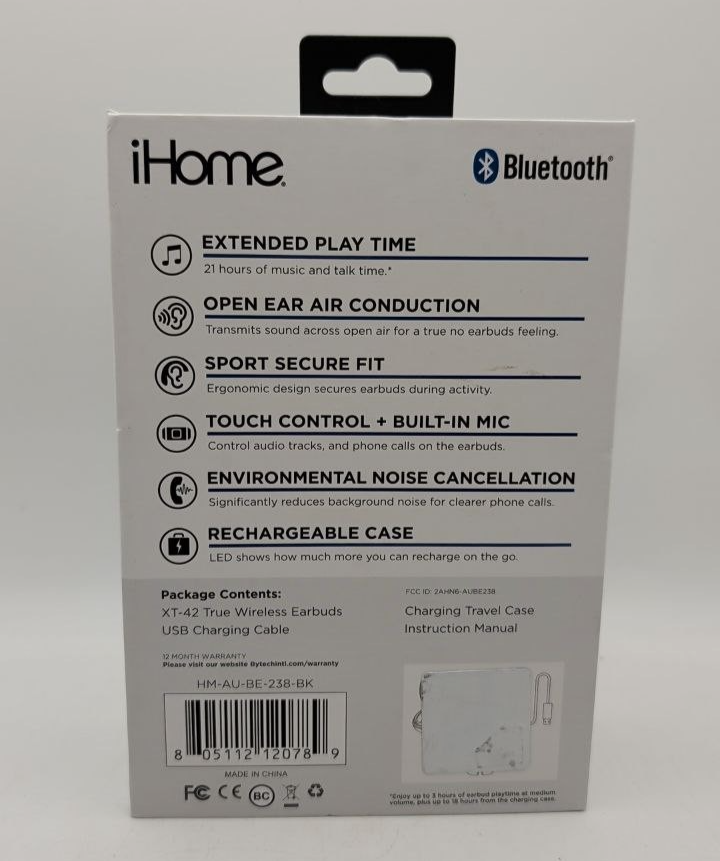Item includes: Please note: This item includes 1x iHome XT-42 True Wireless Earbuds, 1x USB Charging cable Only ? As Pictured. No other accessories are included.