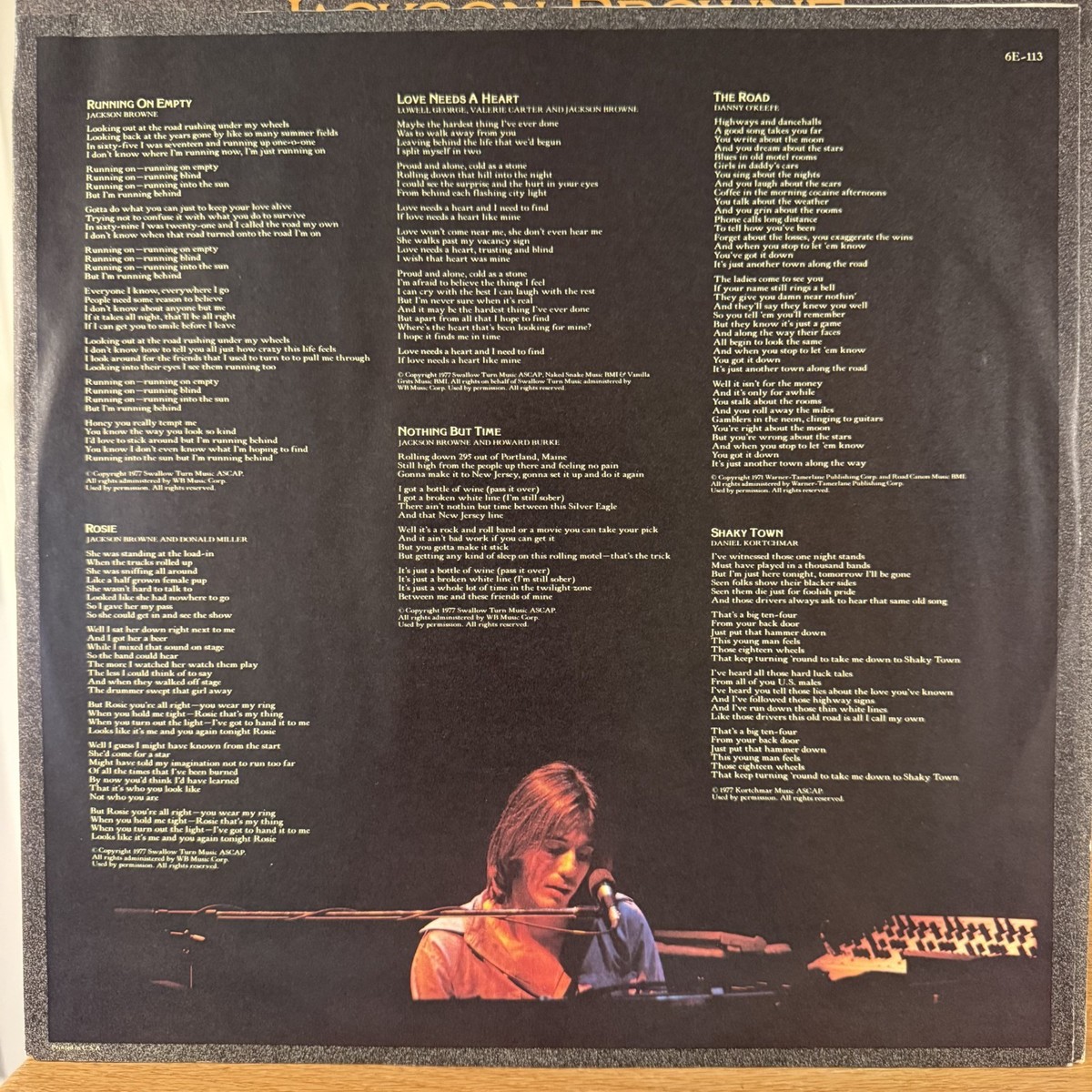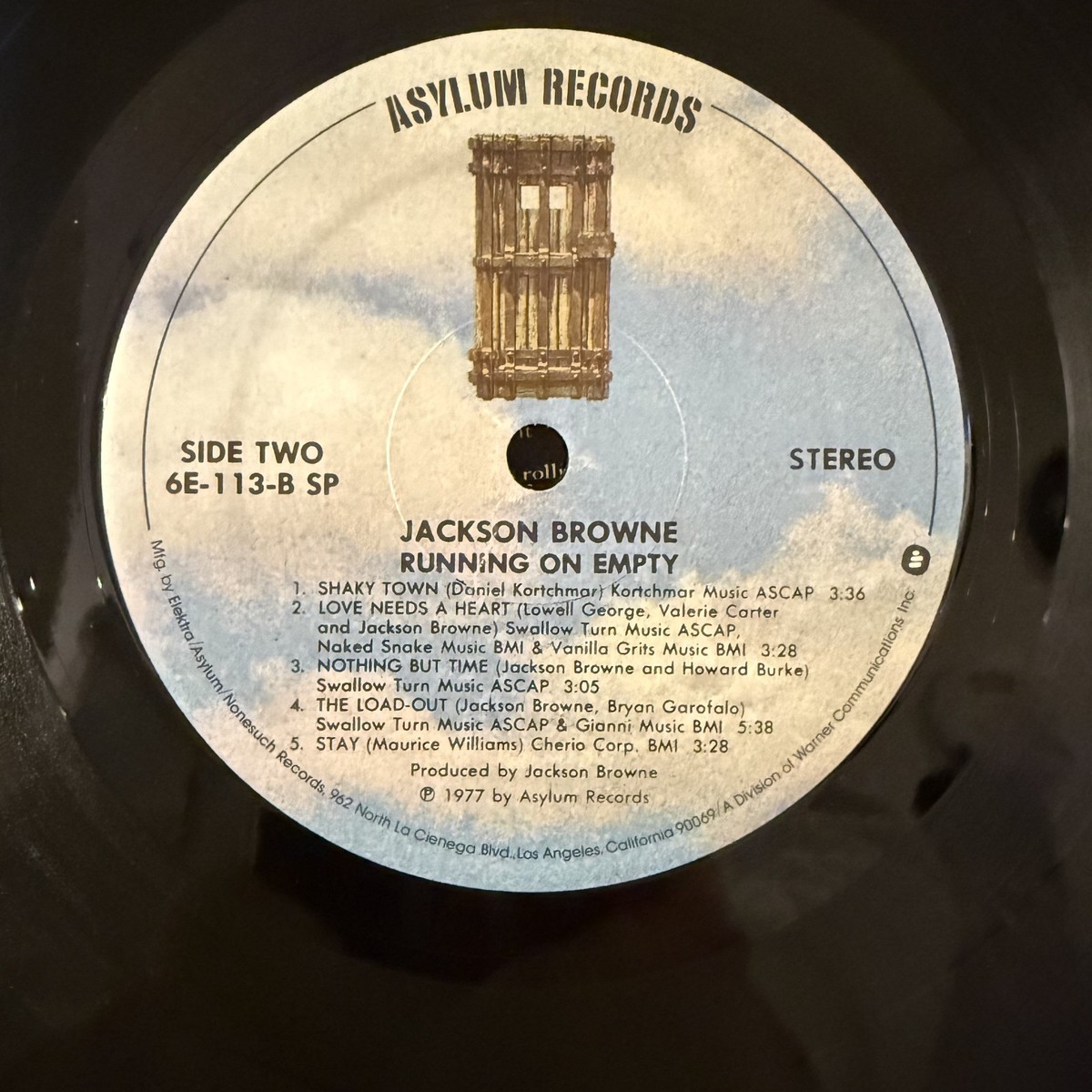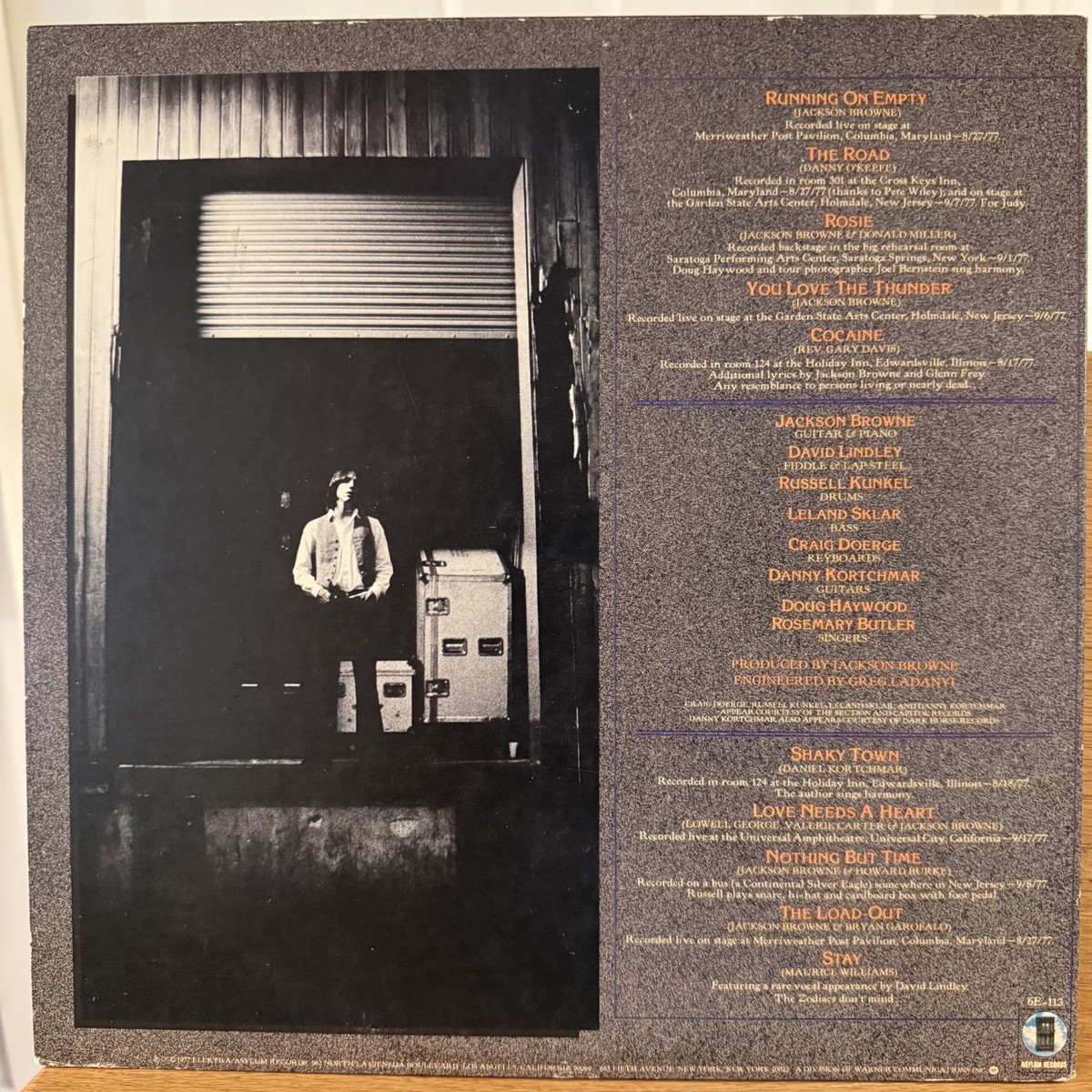 Jackson Browne Running on Empty Vinyl LP Asylum 6E-113 VG+ 1st Pressing Load Out