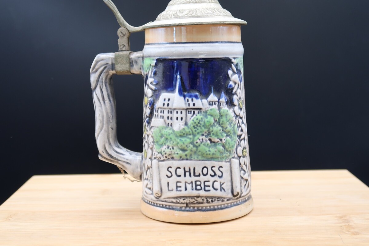 Vintage German Beer Stein Pewter Lid Schloss Lembeck Marked 5064 7"
