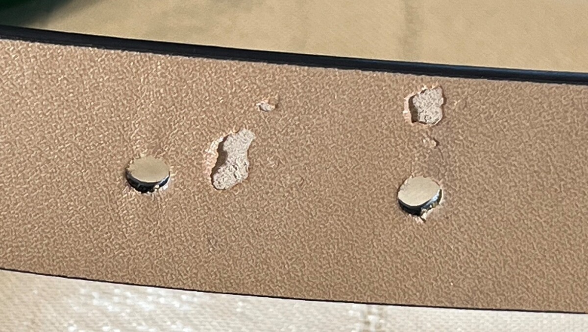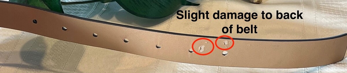 This bag is brand new and unused. There's a flaw on the back of the belt strap, not visible during use and not affecting the utility of the item. (See pictures.)