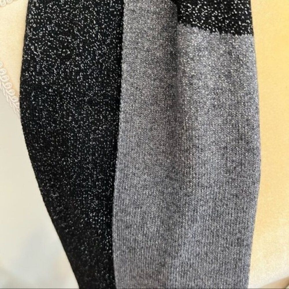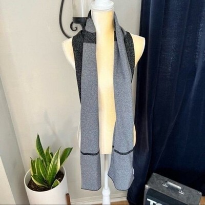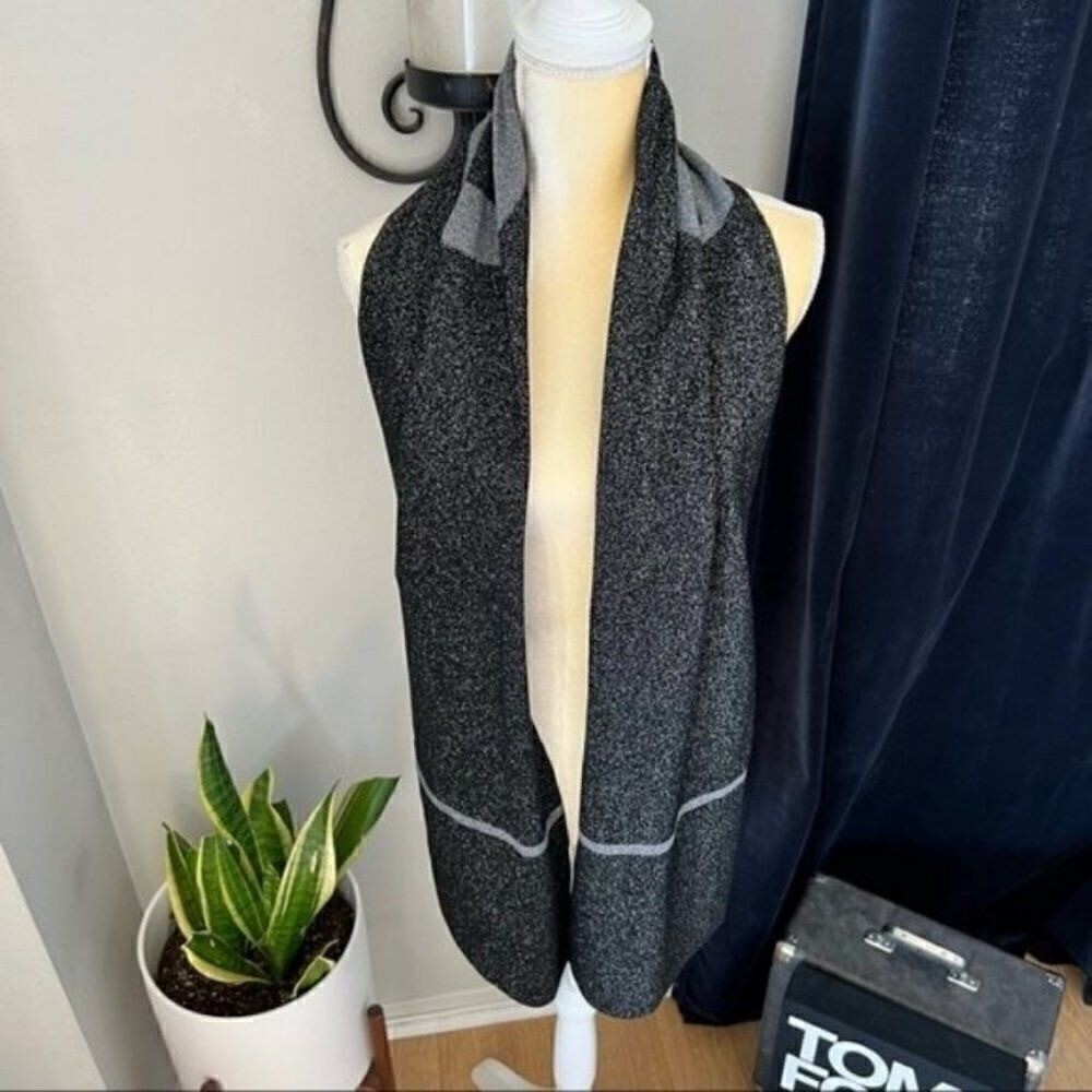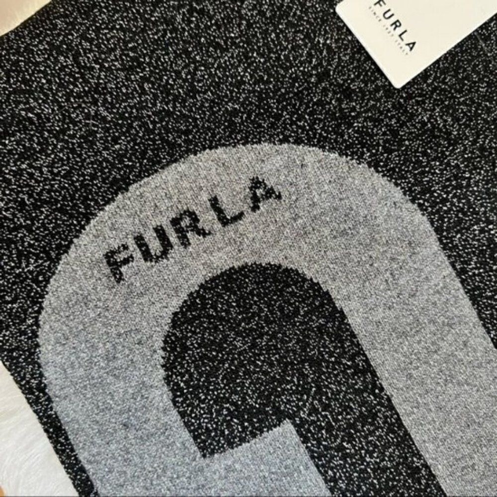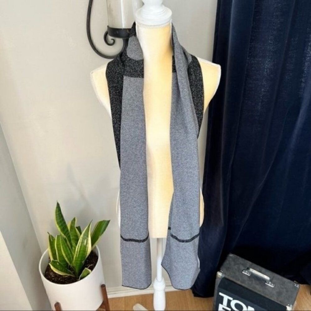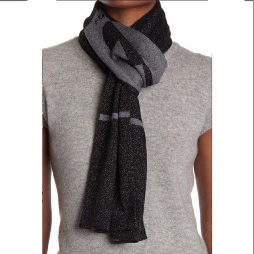 Furla Metallic Knit Scarf, Wool, Black & Gray, Reversible,Designer Luxury, NWT