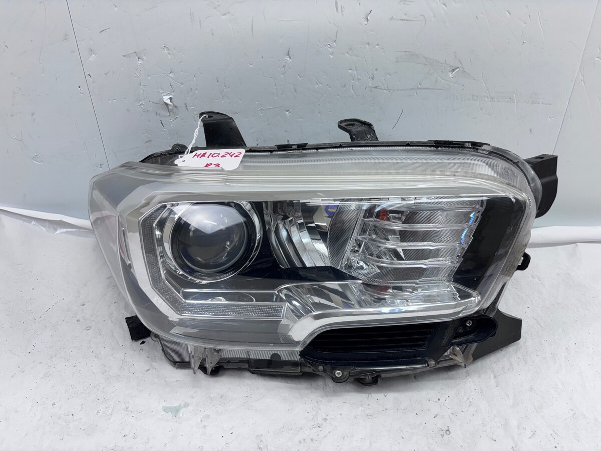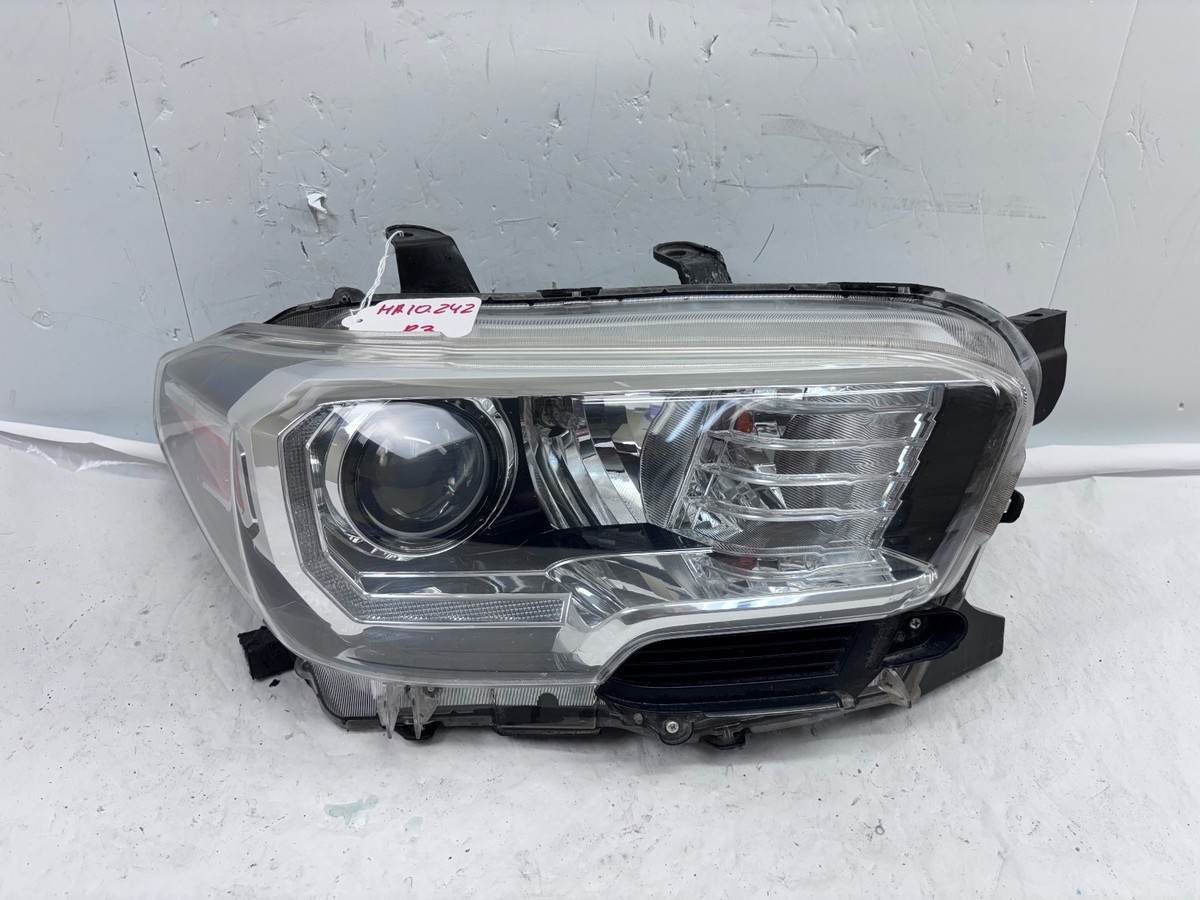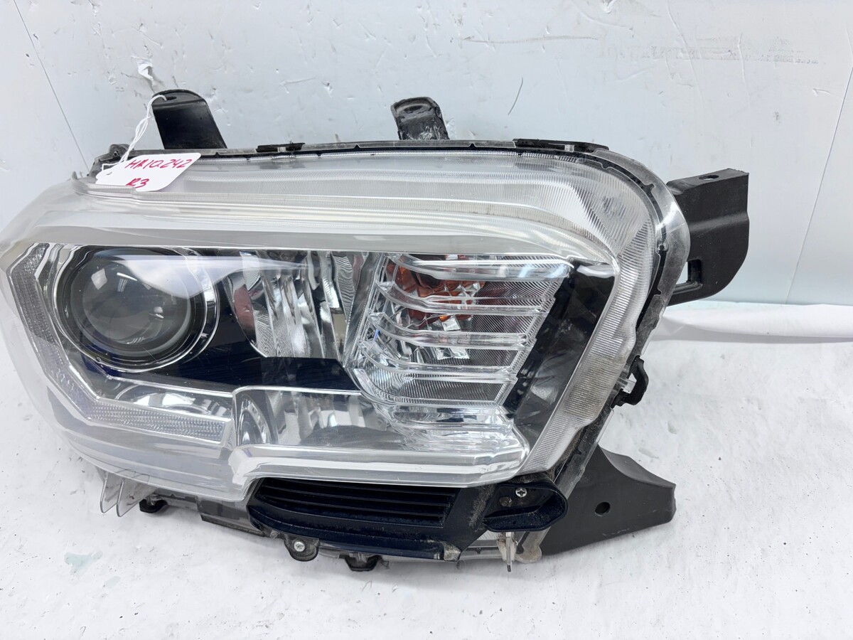 This used OEM right front headlight assembly fits 2016?2022 Toyota Tacoma. It features halogen lighting with a clear lens and a black housing, delivering reliable visibility and a factory-like appearance. OE-certified and designed for a precise fit, this headlight is ideal for keeping your Tacoma looking and performing its best.