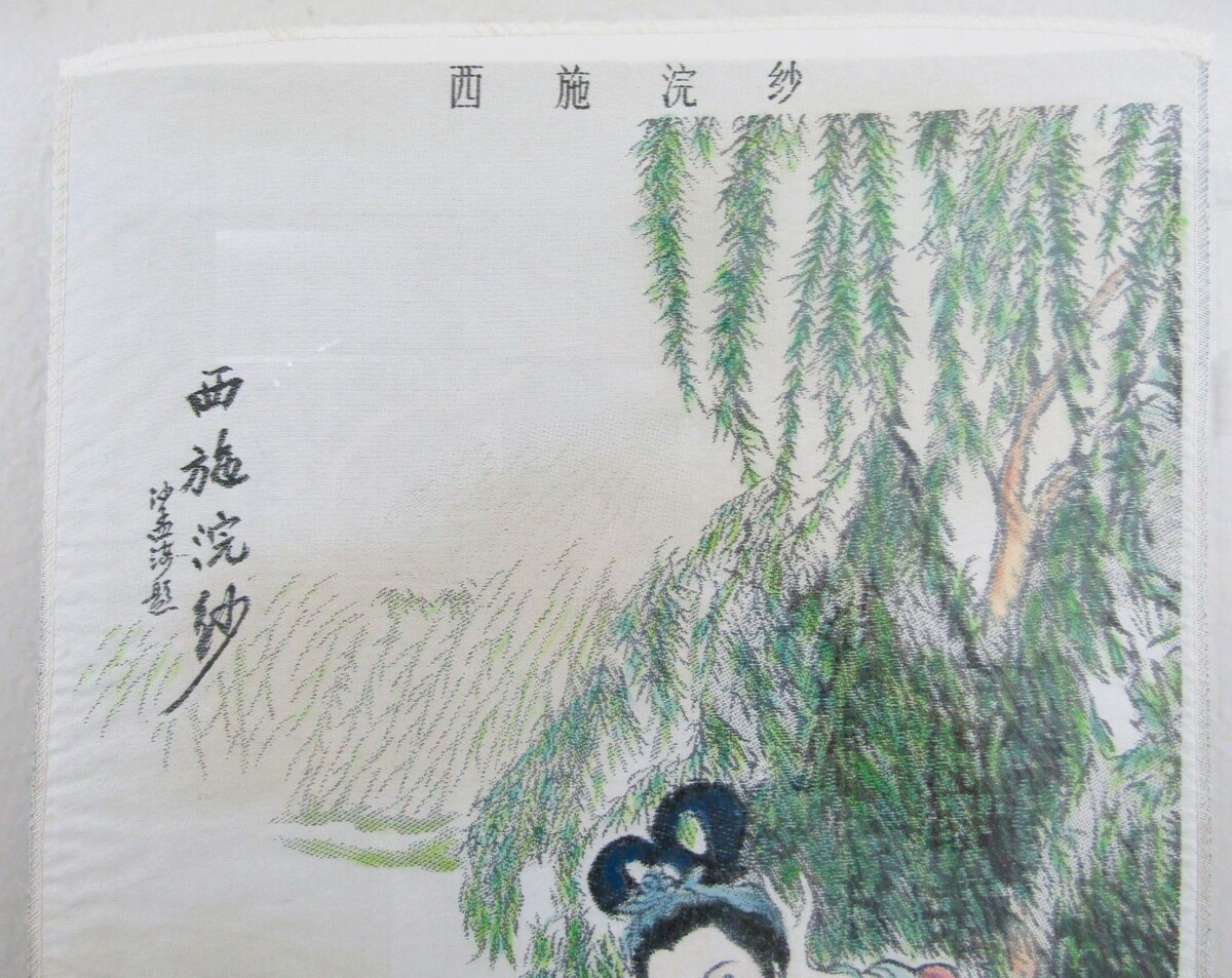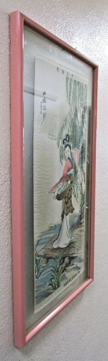 Vintage Framed Painted Silk Hangzhou Silk Arts and Crafts Xi Shi Washing Yarn