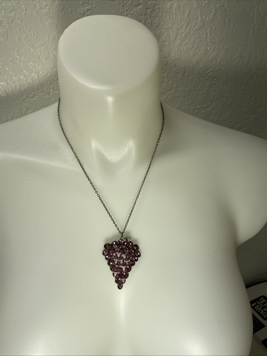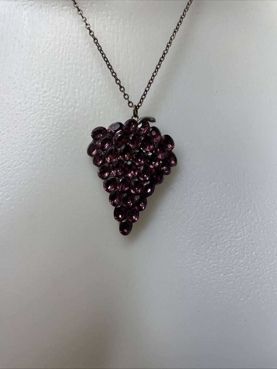 Vintage Purple Grapes Pendant Necklace Estate Jewelry Find KG
