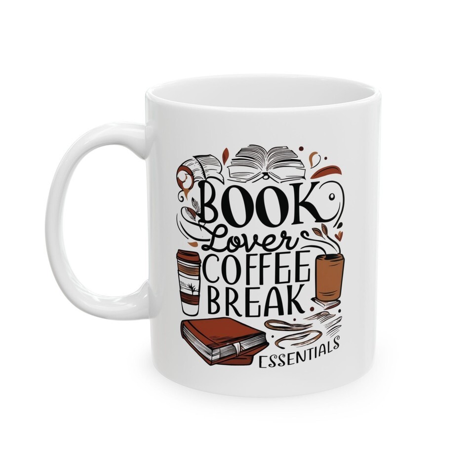 Cute Reading Coffee Mug Book Lover Cup Cozy Coffee Break Illustration Read Gift