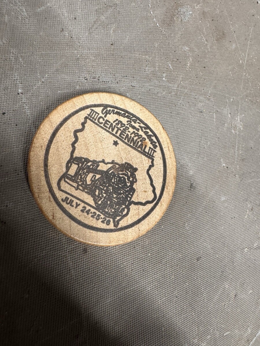 Vintage Lakota Iowa Centennial 1892-1992 Wooden Nickel Germania IA Train Indian