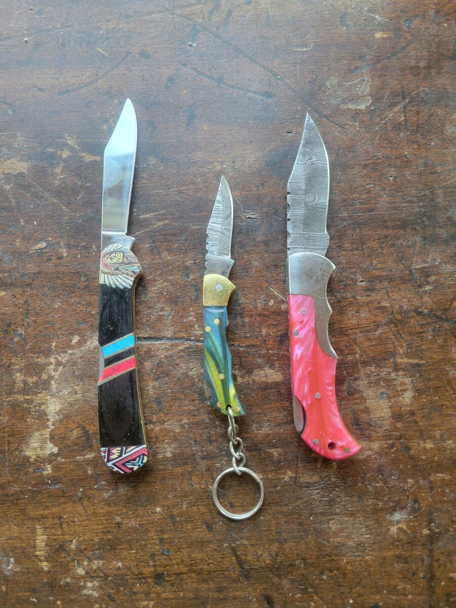 Two Damascus Steel Liner Lock Pocket Knives and 41 similar items