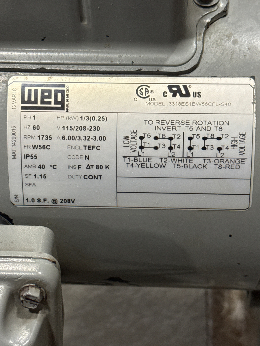 WEG Motor 3318ES1BW56CFL-548 Mechanical Dosing Pump, Motor and Gearbox Assy