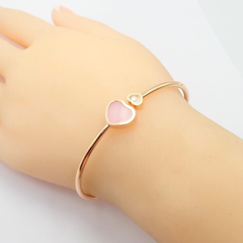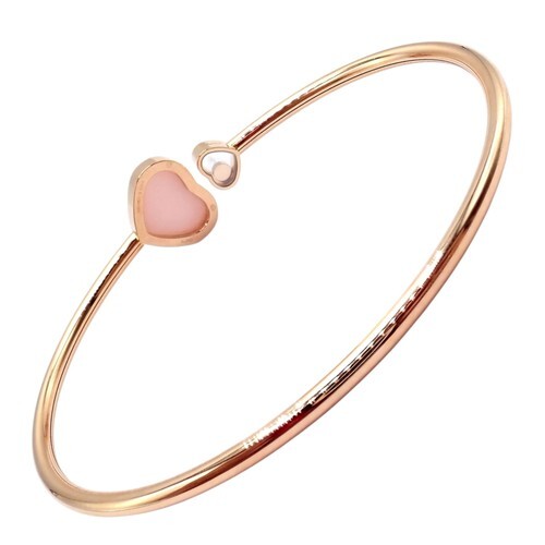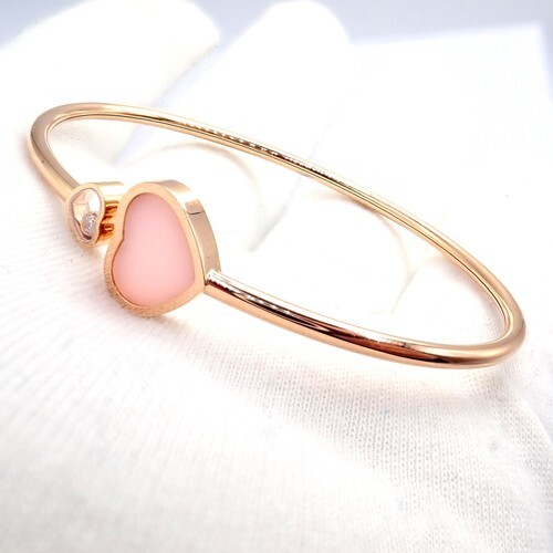 Rare! Chopard 18k Rose Gold Happy Hearts Diamond Pink Opal Bracelet