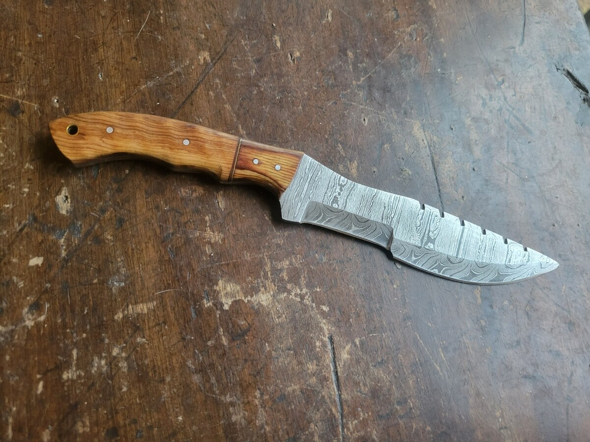 Handmade Damascus Steel Skinning Blade Hunting Knife with Wood Grain Handle