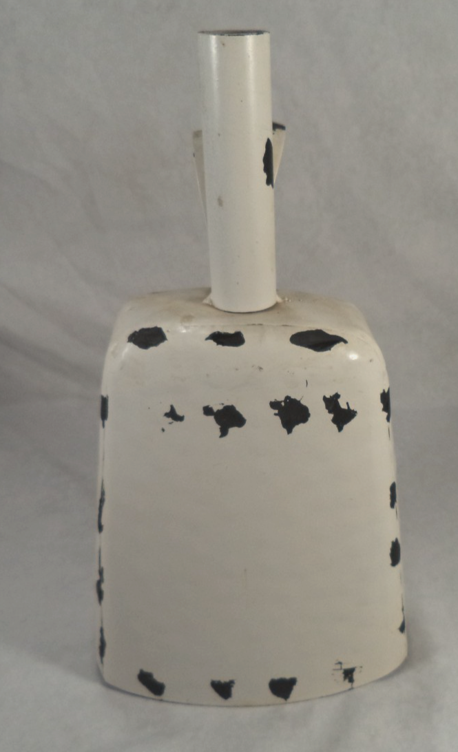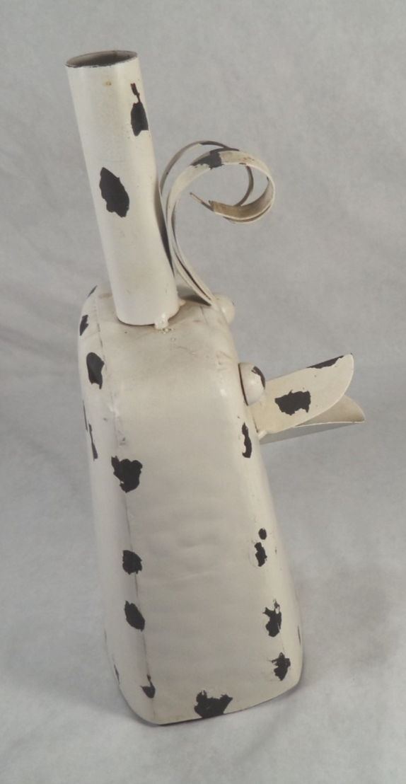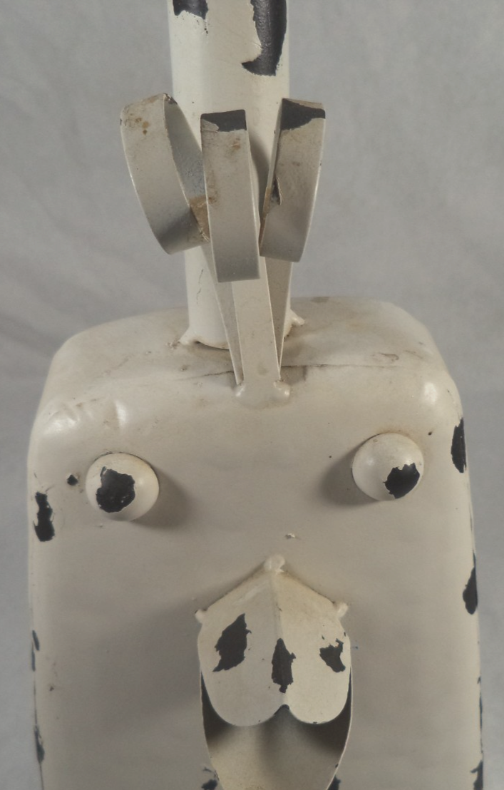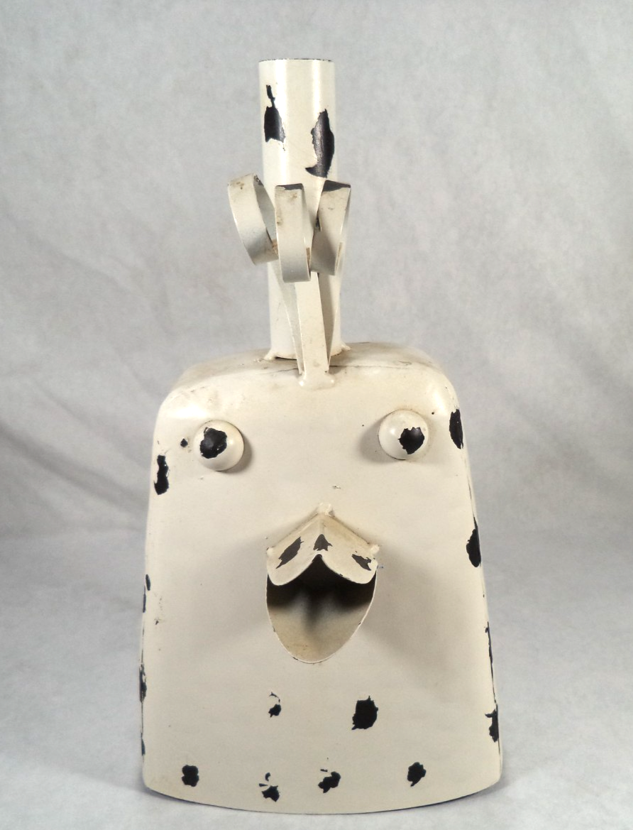 Description: This hand-painted metal rooster cowbell is a unique piece of folk art perfect for adding a rustic touch to your home decor. Standing at 11 inches tall, the beige and black colors give it a charming, countryside feel. Handmade with attention to detail, this bell features a chicken design, making it a delightful addition for those who appreciate farm and countryside aesthetics.