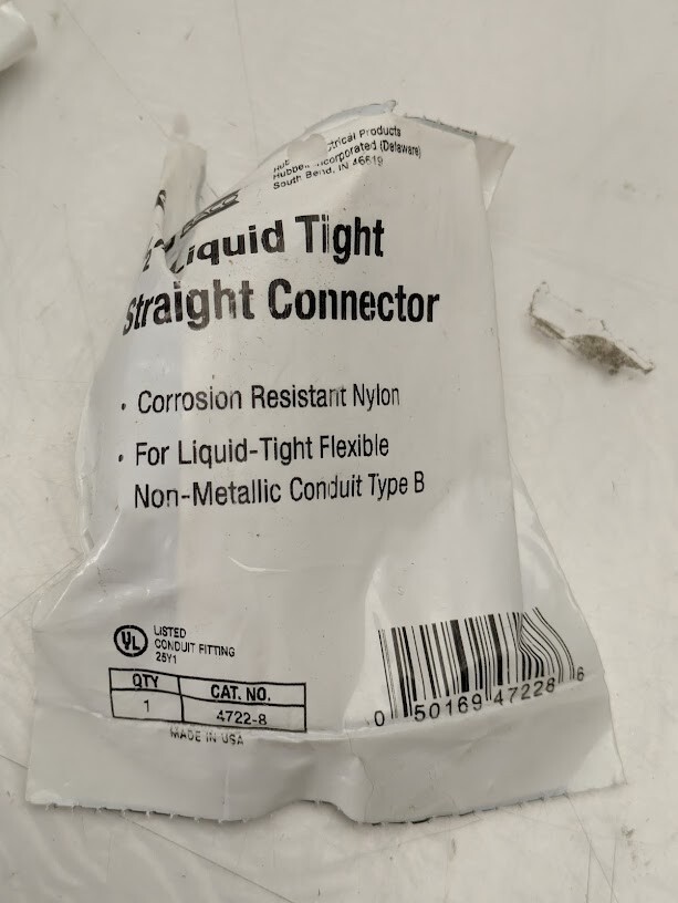 Pack of 15 Hubbell Raco 1/2" Type B Flex Liquid-Tight Straight Connector 4722-8