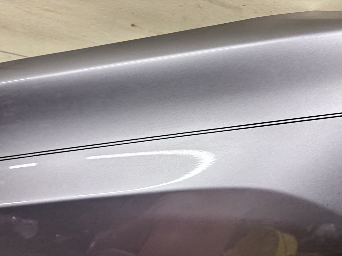 Material is stainless steel with an unfinished silver finish, ready for primer, paint, or plating to match your vehicle. This is a used part with minor wear, including small damages and a slightly bent front lip. Please review the photos and part number to confirm fitment for your exact vehicle.