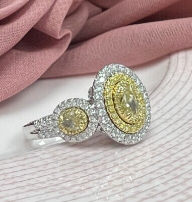 GIA 1.86 CT Oval Natural Fancy Yellow Diamond Engagement Ring 18k White Gold