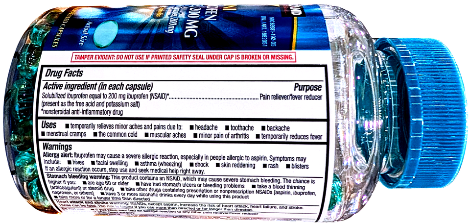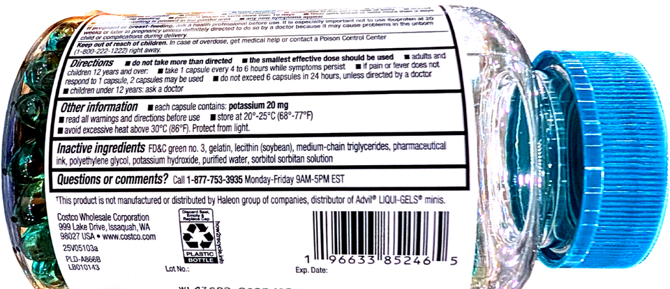 Kirland Signature Mini Ibuprofen 200mg 500 Count Softgel EXP 02/2027