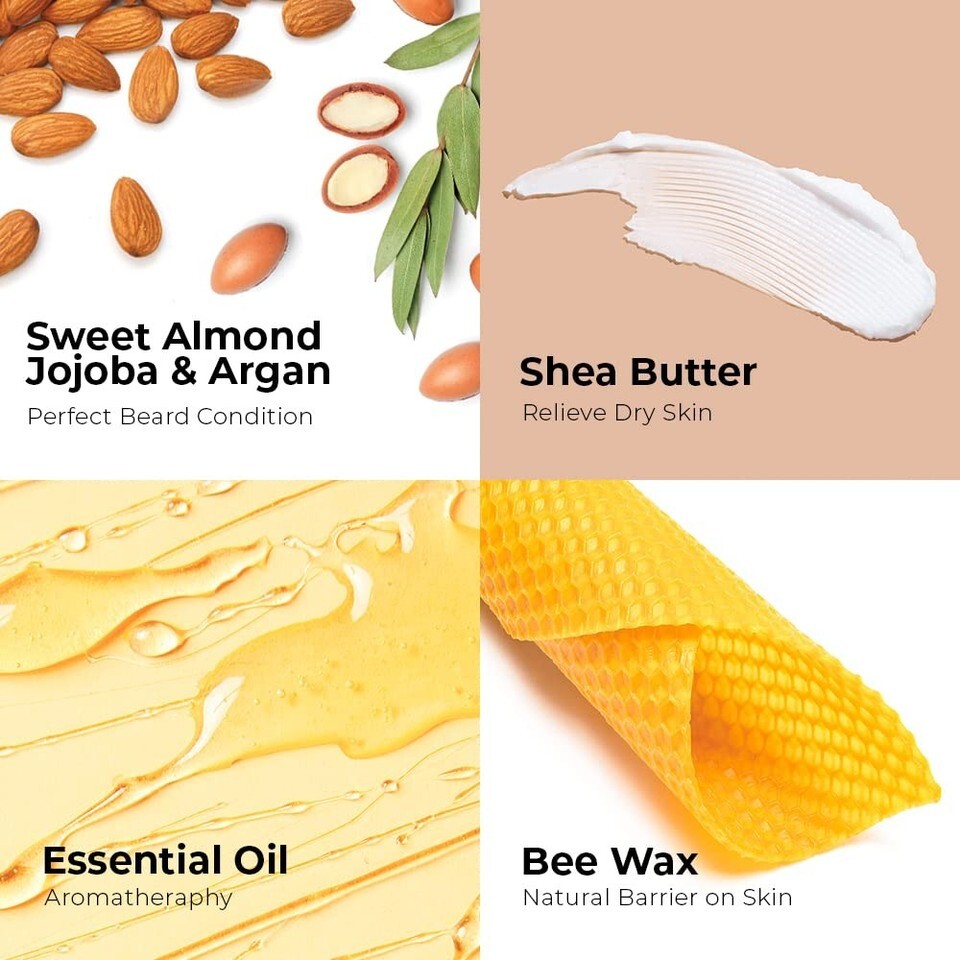 Pure and Natural: Our Beard Balm is made with a blend of natural ingredients, including Shea butter, Jojoba Oil, and Beeswax. This product is free from chemicals and additives, making it suitable for all skin types.