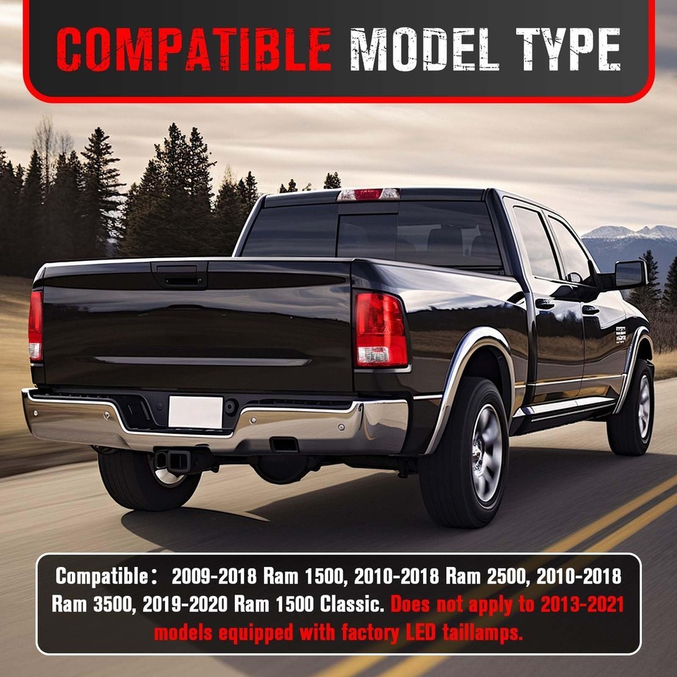 ?Applicable?Tail Light Assembly for Dodge Ram 1500/2500/3500 2009-2018, 1500 Classic 2019-2020.2009-2018 Ram 1500, 2010-2018 Ram 2500, 2010-2018 Ram 3500, 2019-2020 Ram 1500 Classic.