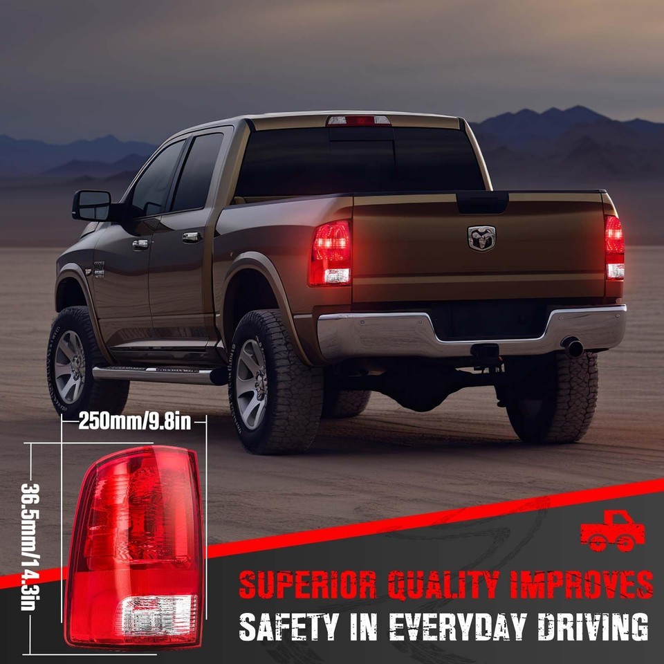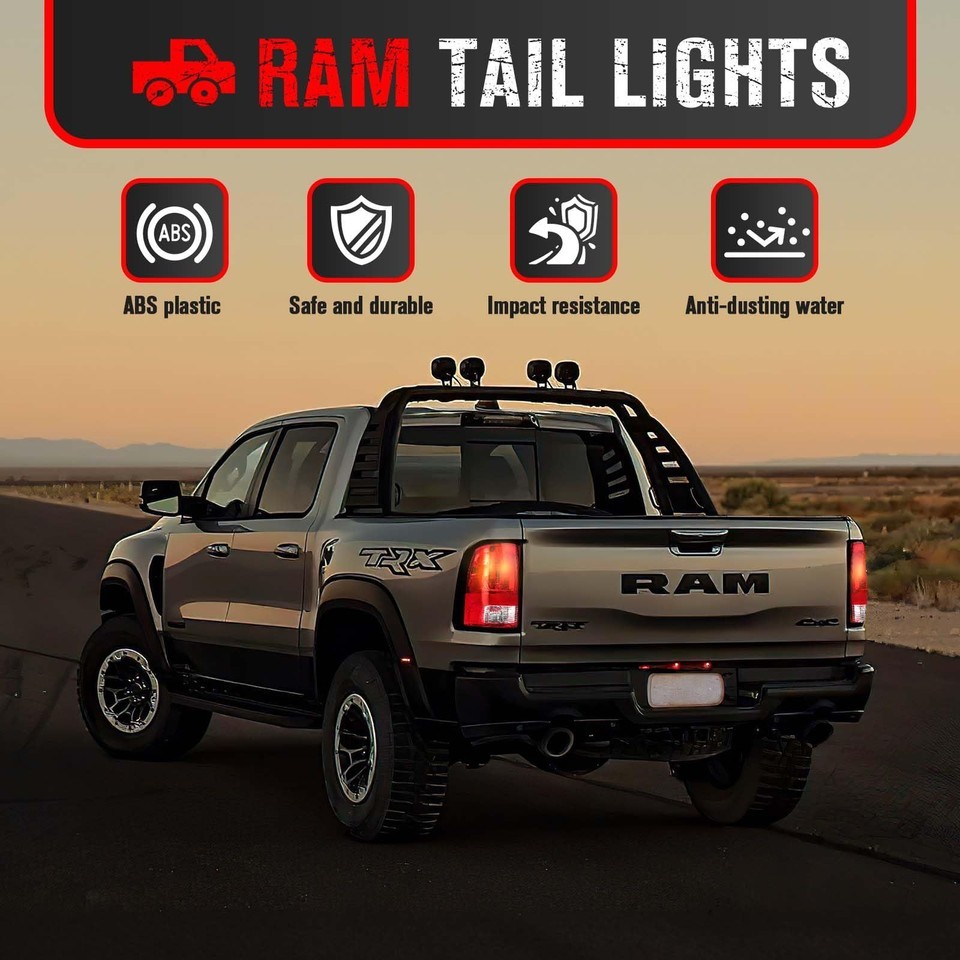 ?Superior Quality?The ram 1500 tail lights are made of high grade ABS plastic with good shock resistance, IP67 waterproof, dustproof, impact resistant and long lasting performance. High power bulb can provide enough brightness for night driving and improve the safety of daily driving
