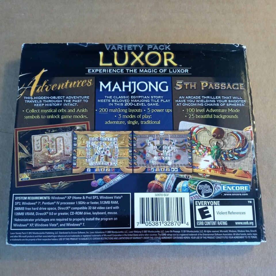 Luxor Variety Pack (PC Game, 2012 ).New Condition ; See Pictures Attached For Exact Condition . Shipped with USPS First Class Mail . You Will Receive 1 ea PC CD ROM as shown in pictures attached. SHIPS N 24 HOURS Packed By Our Award Winning Packaging And Shipping Department Long Time E-commerce Seller For Over 20 Years LIMITED AVAILABILITY THANK YOU FOR SUPPORTING OUR FAMILY OWNED USA BUSINESS Collectible New PC CD ROM- Tested And Cleaned With Our Professional Cleaning Equipment Before Shipped - Ships Immediately - Great Product at a Unbelievable Price - Your Chance To Own This Collectible PC CD ROM Before Its Gone Inventory Box #6003
