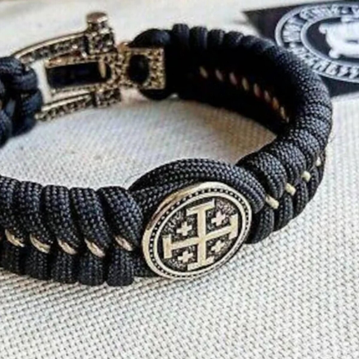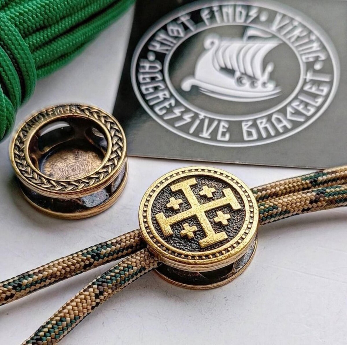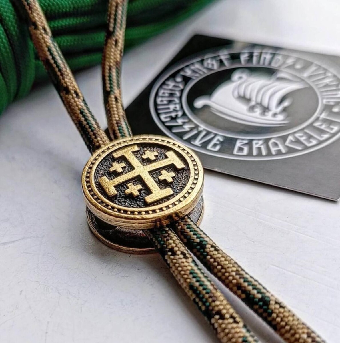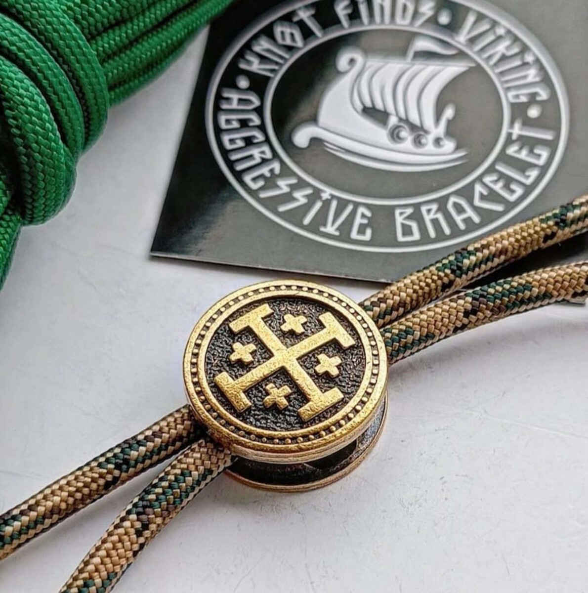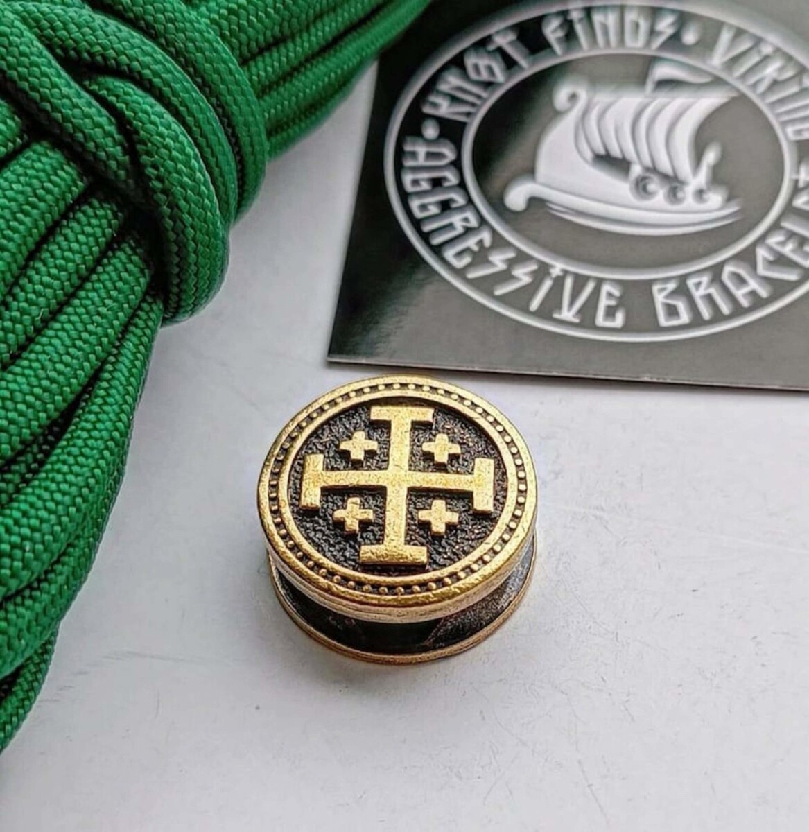 Hand-cast Jerusalem Cross brass bead — a symbolic accent for bracelets, lanyards, and EDC accessories. Each piece is individually cast by hand in Ukraine, giving it a unique character and artisan quality not found in mass-produced fittings. The bead adds a strong spiritual, historical and pilgrimage-inspired meaning to your handmade creations — ideal for Viking, Crusader, medieval or sacred-symbol designs.