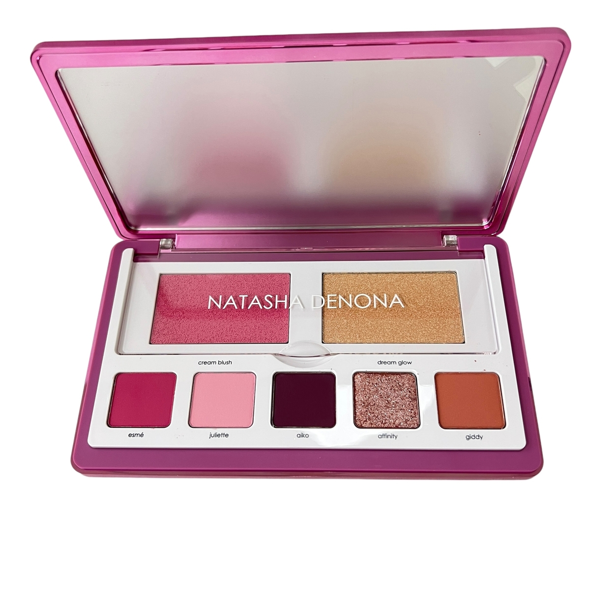 Paired with a rich taffy pink cream blush champagne gel to powder highlighter, the LOVE FACE PALETTE is inspired by Natasha's need for a do-it-all all palette designed for travel or quickly taking a look from day to night.