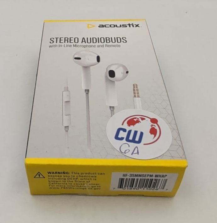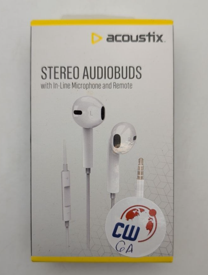 Acoustix Stereo Audiobuds with In-Line Microphone and Remove 3.5 mm Jack White