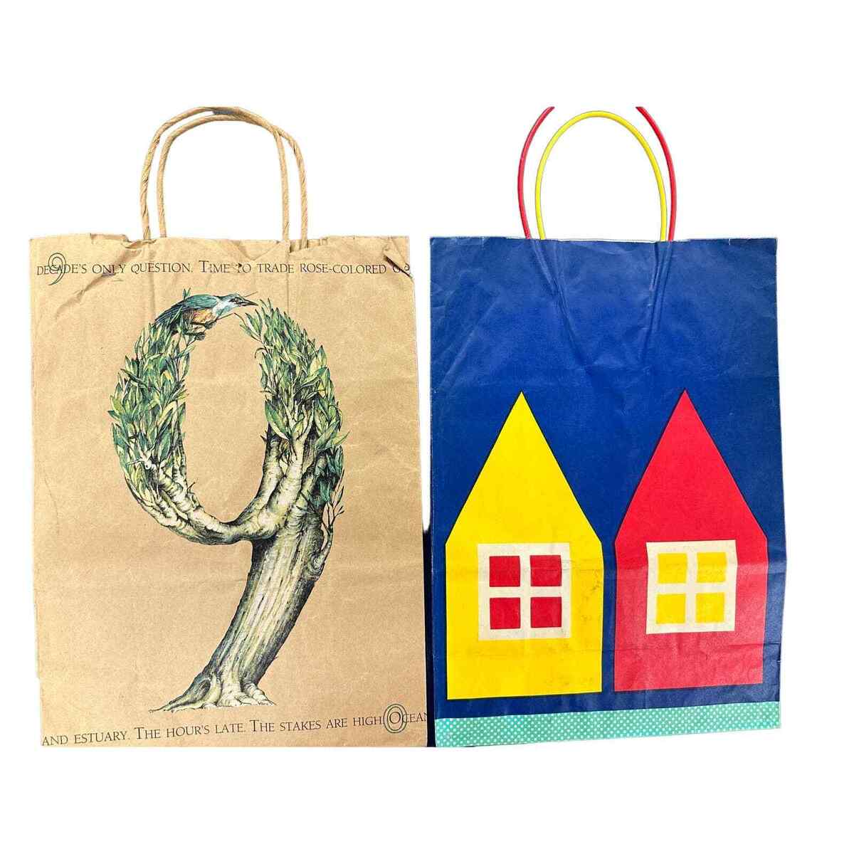 2 RETRO Bloomingdales Paper Bag Josef Sumichrast Earth Day 1990 & Houses 1987