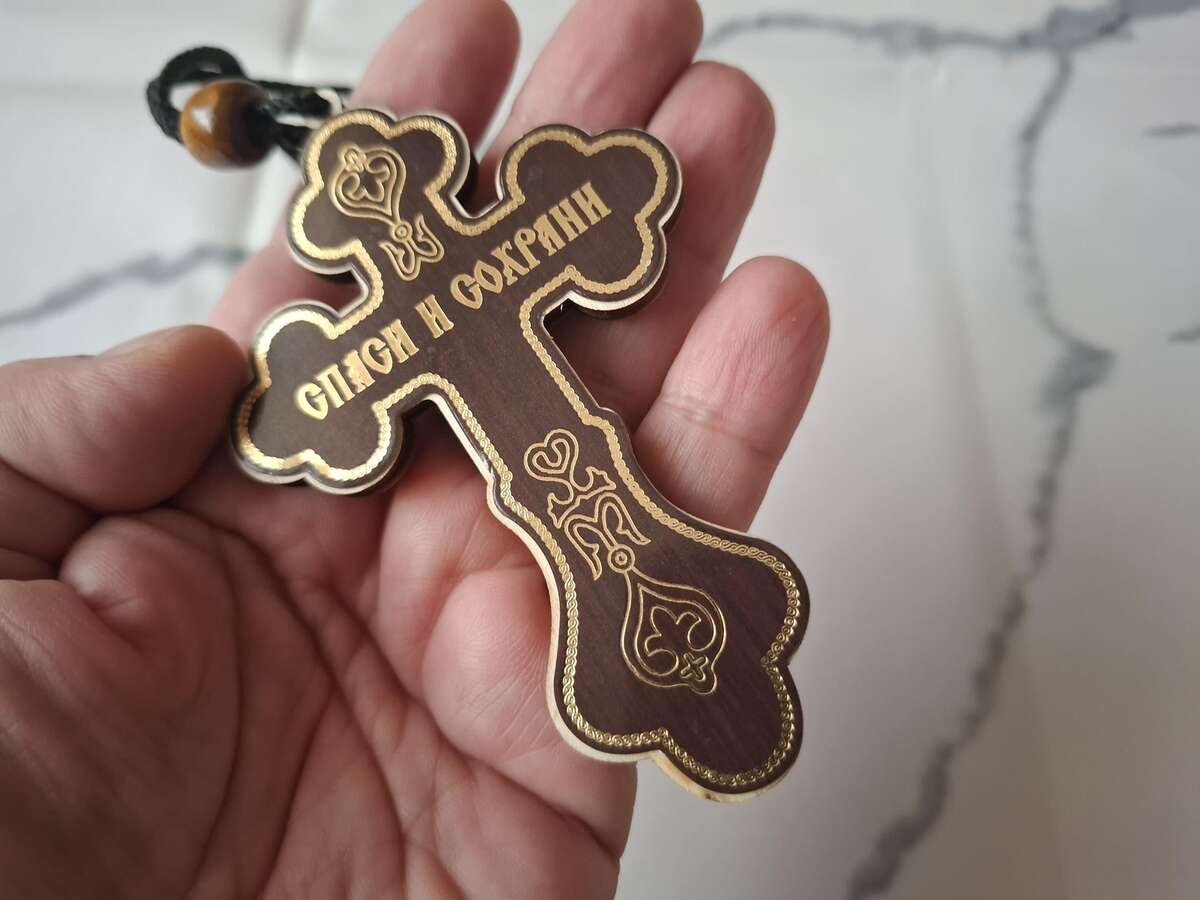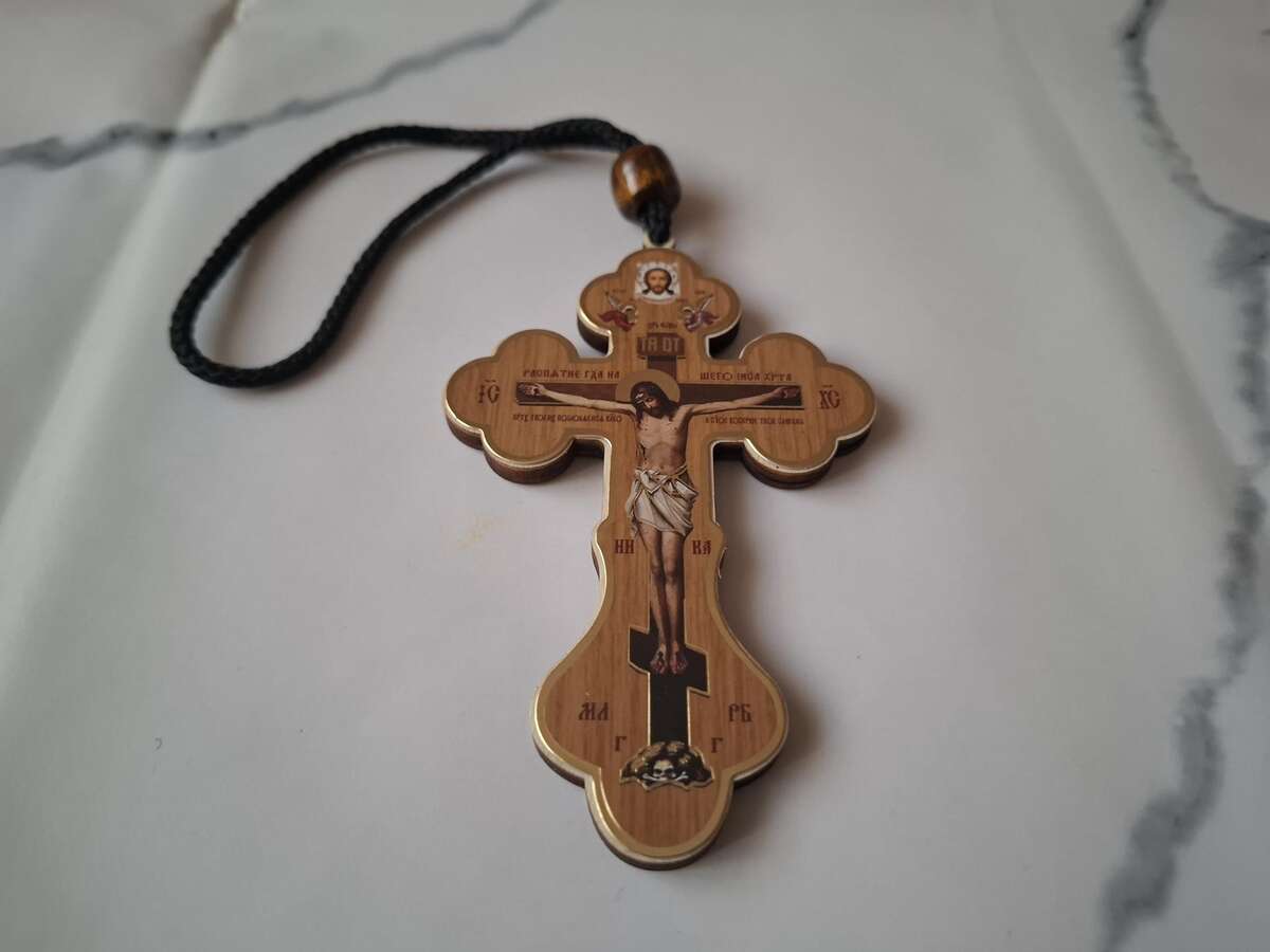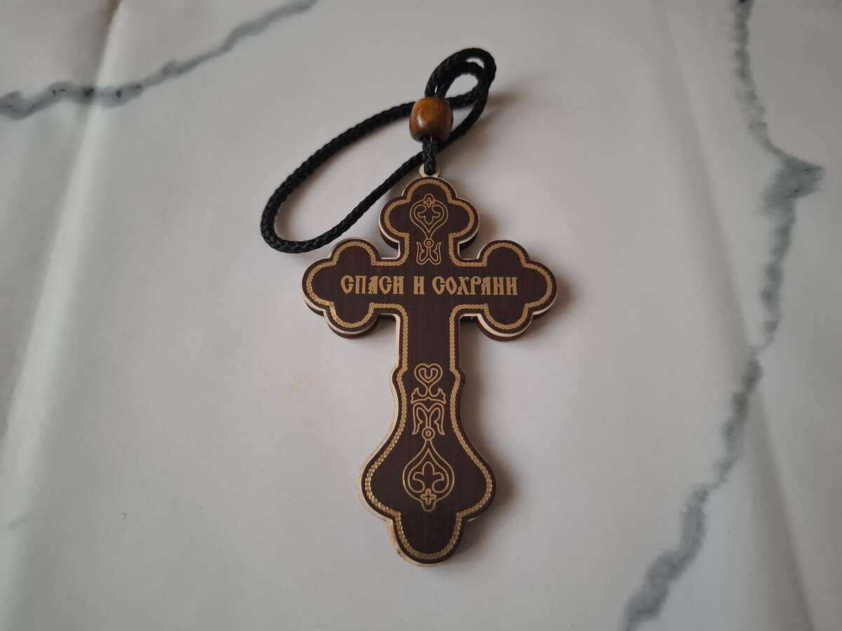 A very lightweight cross, brown in the main color, that can be used for any occasion and can also be a good gift for your friend or relative. A priest of the Orthodox Church consecrated the item.