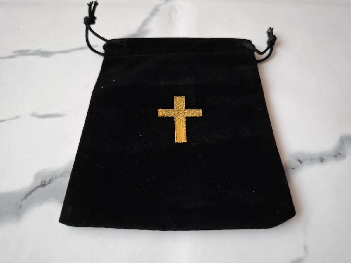 This is an small Orthodox plush bag, handmade. Brand new, ready for use, and can also be a good gift for your friend or relative. A priest of the Orthodox Church consecrated the item.