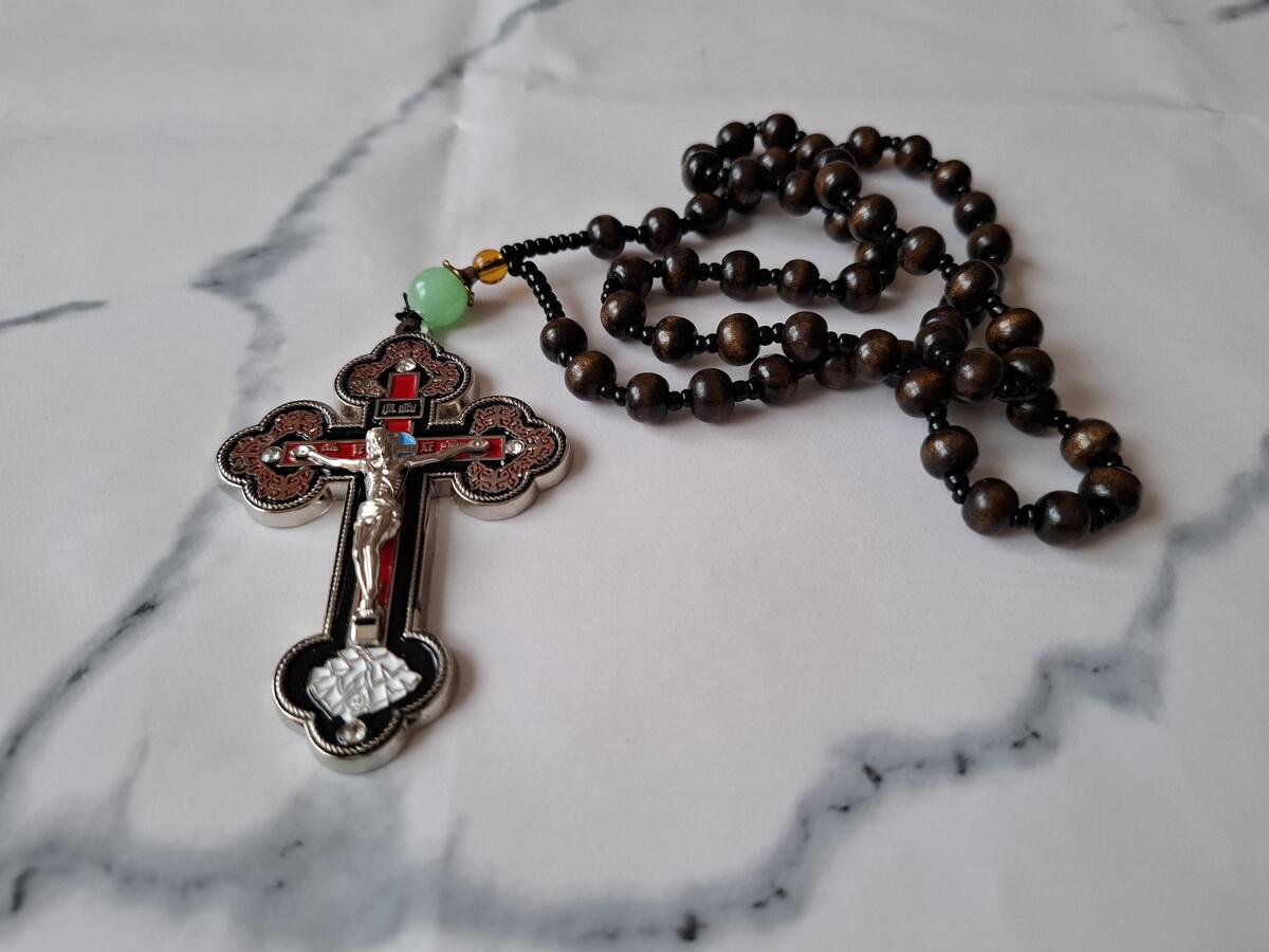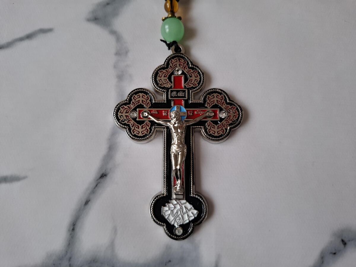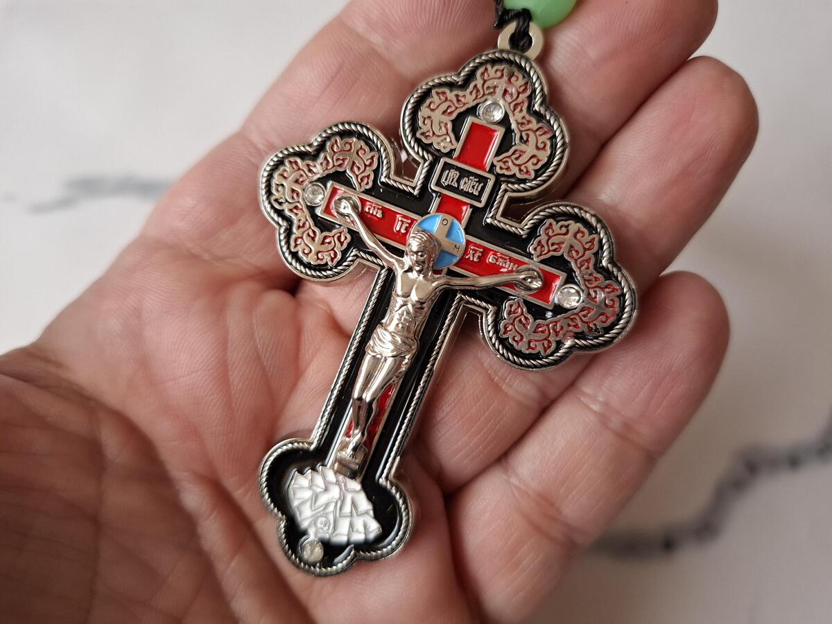 This is a very beautiful Serbian Christian Orthodox cross necklace, black in the main color, that can be used for any occasion and can also be a good gift for your friend or relative. A priest of the Orthodox Church consecrated the item.