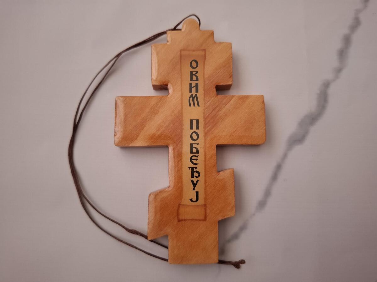 Serbian Christian Orthodox Wooden Pectoral Cross Pendant with Rope Cord for Car Rear View Mirror