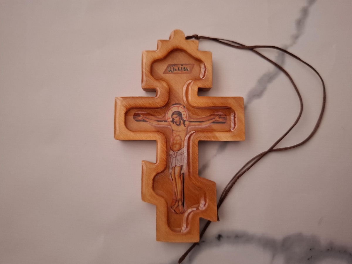 This is a very beautiful lightweight Christian cross in a basic brown color. It is intended to be used as a decoration on your car's rear view mirror and can also be a good gift for your friend or relative. A priest of the Orthodox Church consecrated the item.