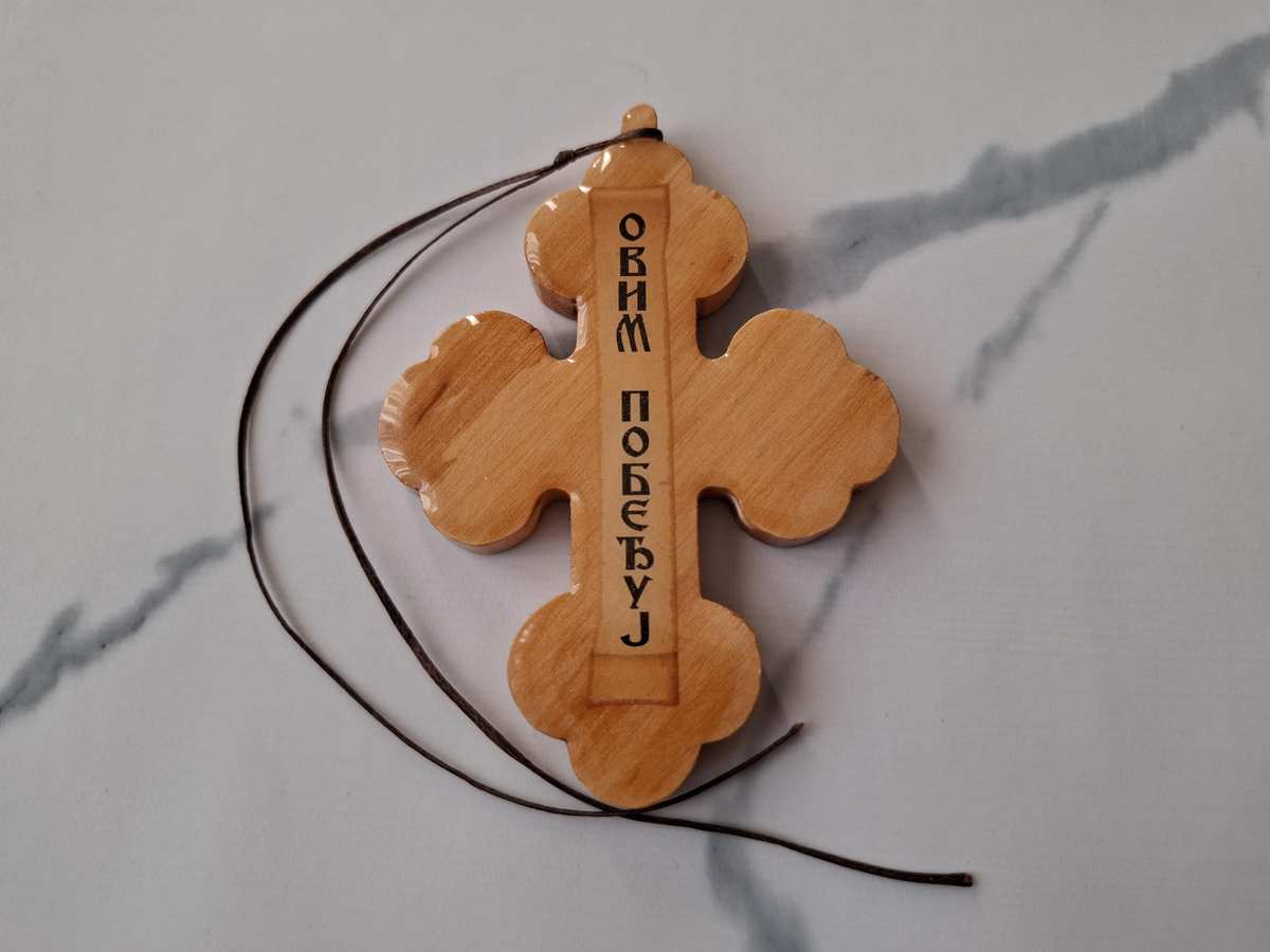 Serbian Christian Orthodox Wooden Pectoral Cross Pendant with Rope Cord for Car Rear View Mirror