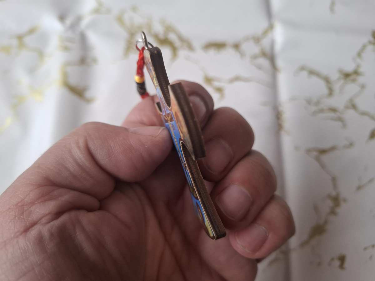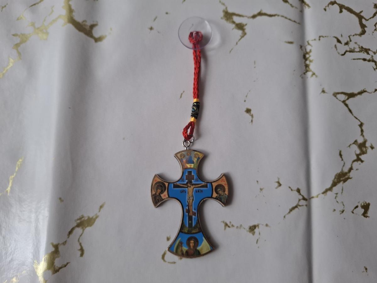 This is a very beautiful lightweight Christian cross in a basic blue or brown color. It is intended to be used as a decoration on your car's rear view mirror and can also be a good gift for your friend or relative. A priest of the Orthodox Church consecrated the item.