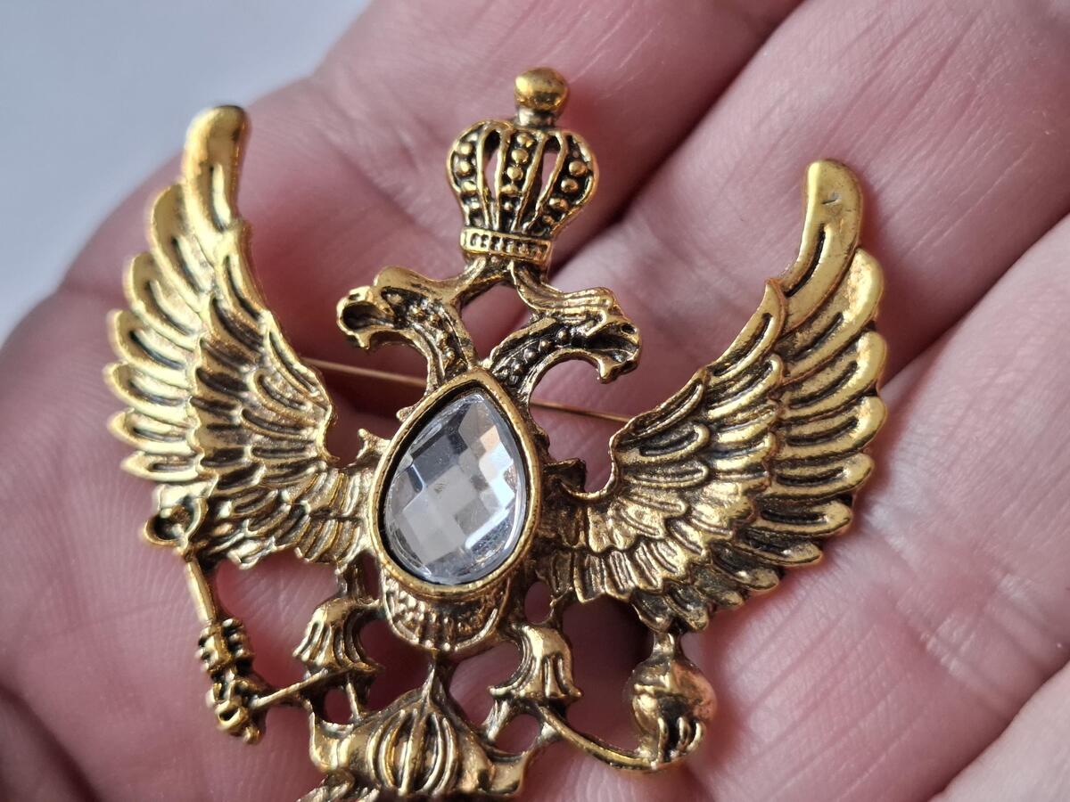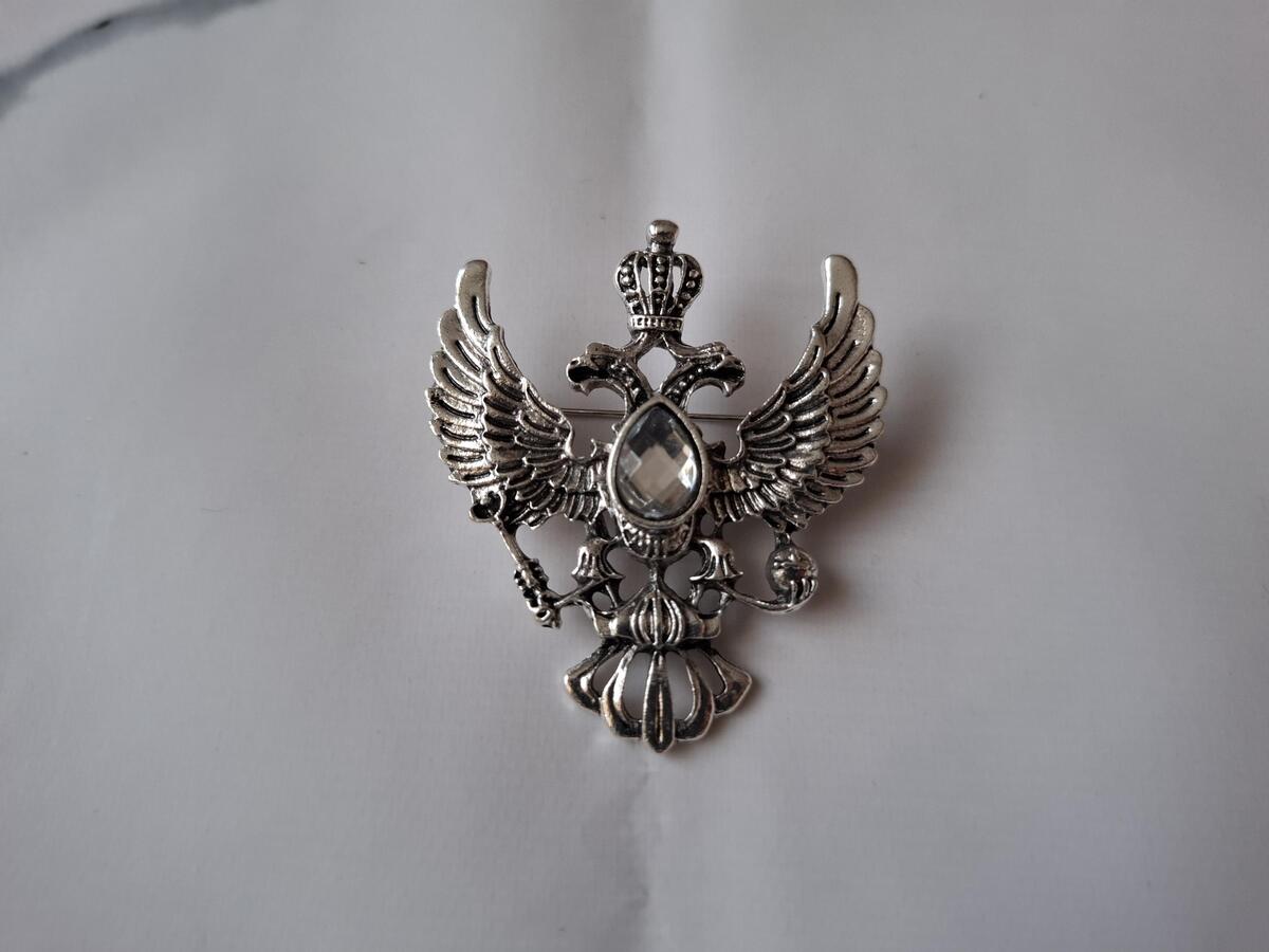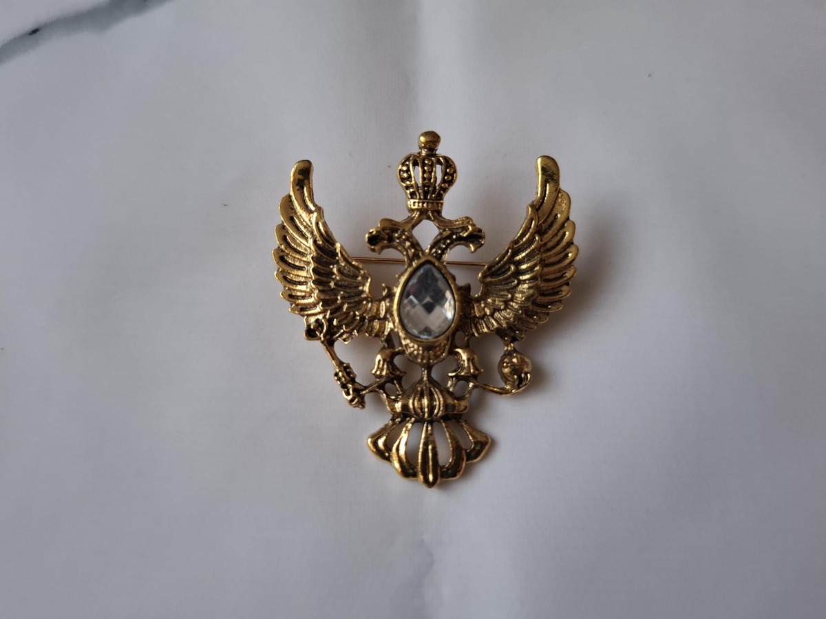 This is a very beautiful Coat of arms brooch in a silver and gold color. It is intended to be used as a brooch and can also be a good gift for your friend or relative.