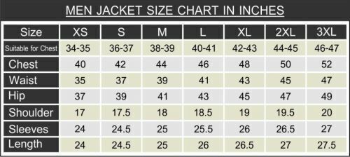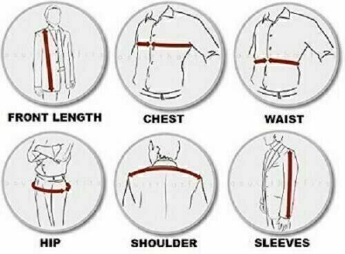 Te sugerimos; el tamaรฑo del pecho de la chaqueta debe ser 4 pulgadas o 10 cm mas grande que el tamaรฑo real del pecho de tu cuerpo.