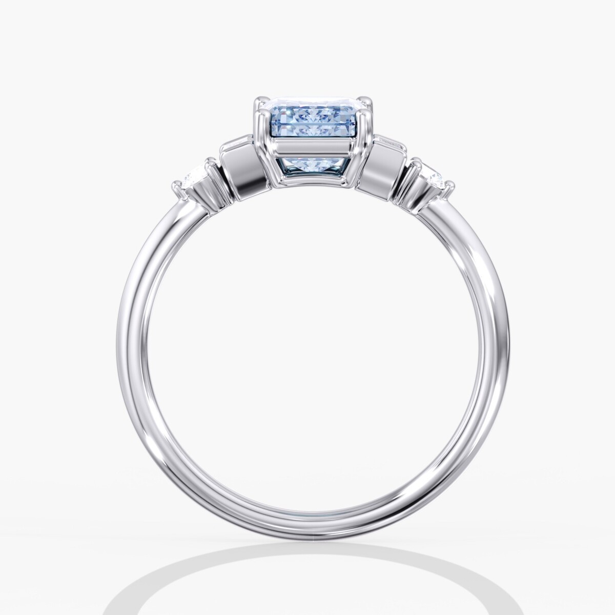 14K Solid White Gold Fancy Blue Emerald Cut Lab Grown Diamond Ring 2.25ctw