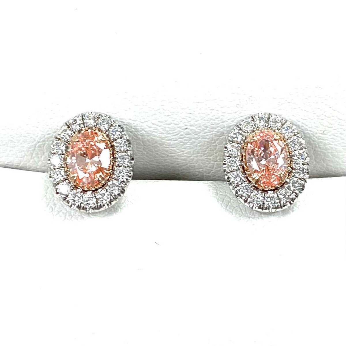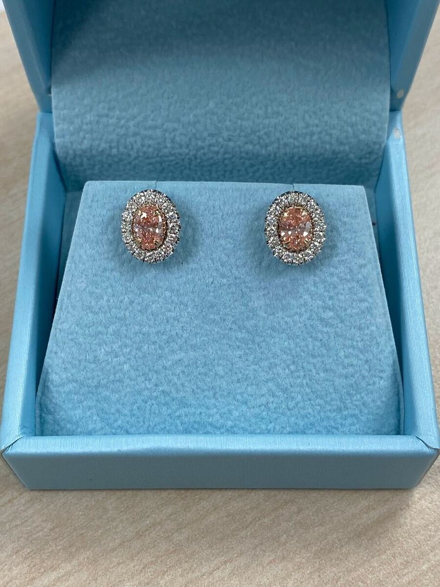 1.20 TCW Oval Halo Lab Grown Vivid Pink Diamond Stud Earrings 14k White Gold