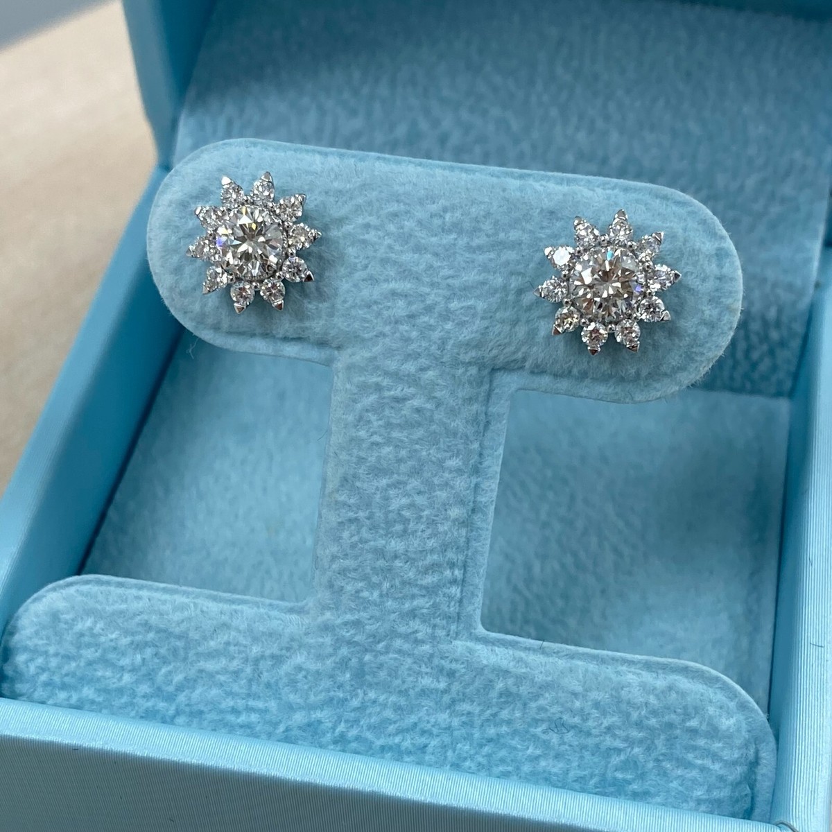 1 Carato Laboratrio Cresciuta Rotondo Brillante Taglio Diamante Borchie Sunburst