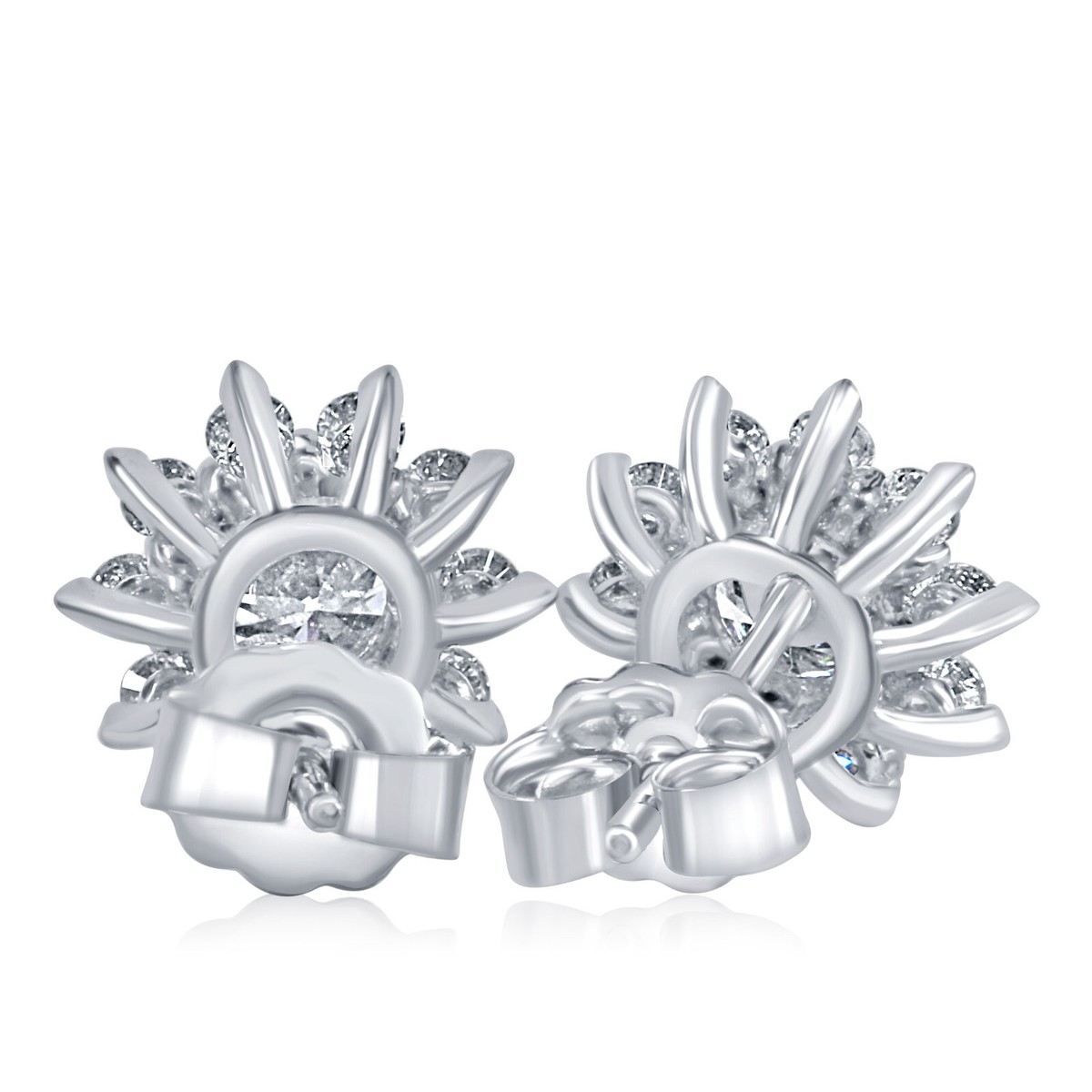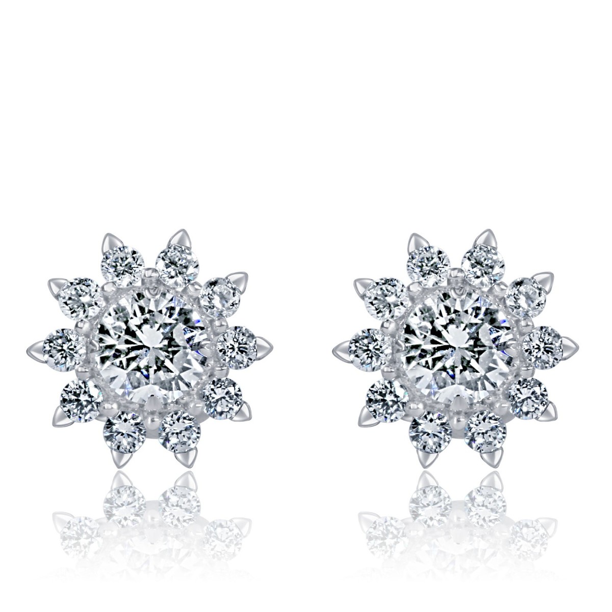 Questi splendidi orecchini a borchie sono realizzati in oro bianco 14k e presentano diamanti coltivati ??in laboratorio in un radioso design da sole. Ogni orecchino mette in mostra un diamante coltivato in laboratorio incolore al centro, circondato da raggi di diamanti luccicanti che emulano lo splendore del sole. Eleganti e accattivanti, sono perfetti per aggiungere un tocco di sparkle sia agli sguardi quotidiani che alle occasioni speciali.
