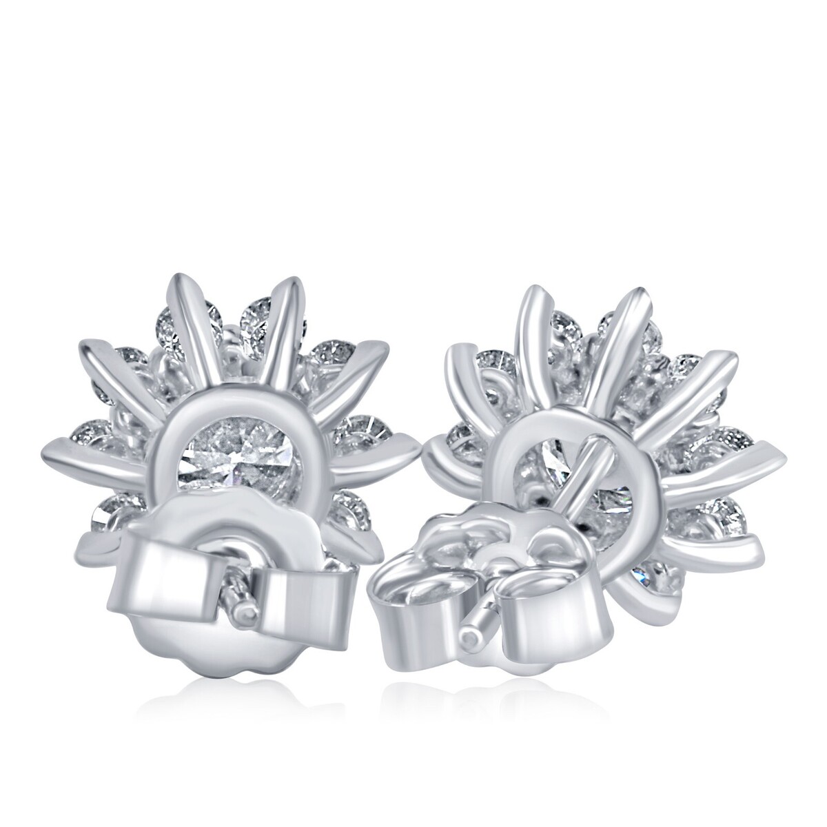 Ces superbes boucles d'oreilles sont fabriquees en or blanc 14 carats et comportent des diamants cultives en laboratoire dans un design radiant. Chaque boucle d'oreille presente un diamant cultive en laboratoire rond incolore au centre, entoure de rayons de diamant chatoyants qui imitent l'eclat du soleil. Elegant et accrocheur, ils sont parfaits pour ajouter une touche d' sparkle aux looks quotidiens et aux occasions speciales.