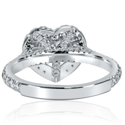 Diese Brillanz eines rund geschliffenen Verlobungsrings mit romantischer und einzigartiger Form, bestehend aus einem 1,74 Karat herzformigen, im Labor gezüchteten Solitardiamanten mit im Labor gezüchteten Diamanten im Rundschliff, elegant eingebettet in einen Heiligenschein und eingefasst in exquisites 14-karatiges Weißgold. Das Gesamtkaratgewicht betragt 2,50 Karat.