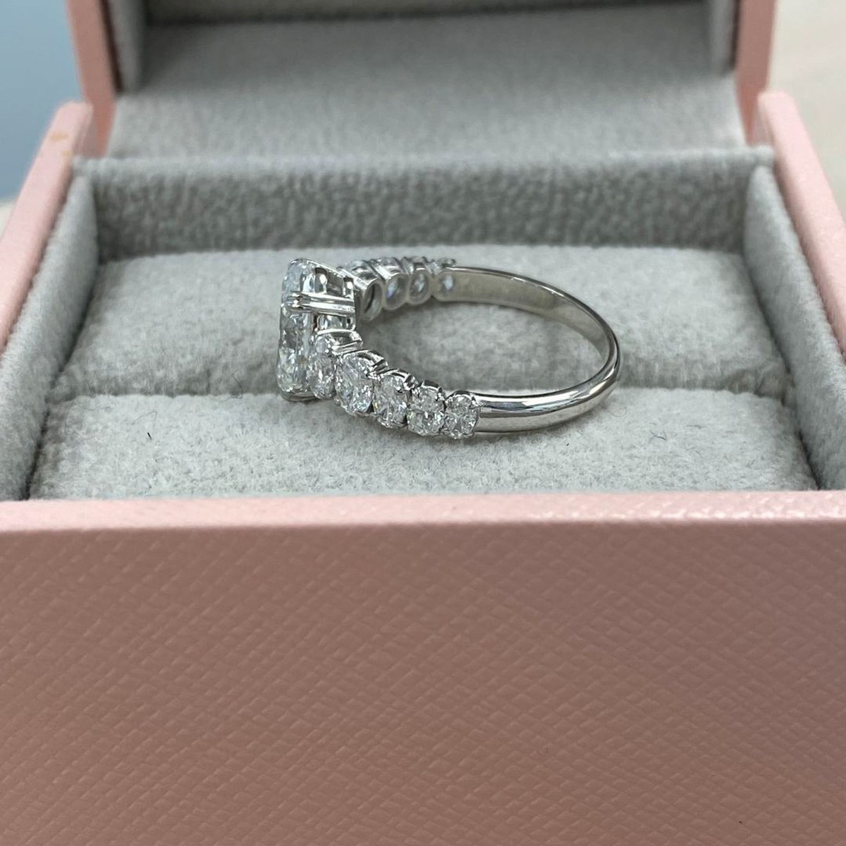 Faites une declaration audacieuse avec cet exquis diamant de laboratoire incolore certifie IGI de taille brillant ovale au centre, rayonnant de teintes vibrantes de romantisme et d'elegance ! Complete par des diamants incolores incolores plus petits cultives en laboratoire de taille brillant ovale sur les cotes, ce design offre un melange exceptionnel de brillance et de sophistication !! Fabriquee en or blanc 14 carats, cette bague est un choix a couper le souffle pour ceux qui apprecient la beaute unique et le luxe moderne !!! Nos produits sont tous fabriques a la main avec qualite et soin, au c?ur du quartier des diamantaires de la 47e rue a New York. Notre devouement et notre engagement envers le bon travail et la qualite depassent tous les autres. Etant donne que tous nos produits sont