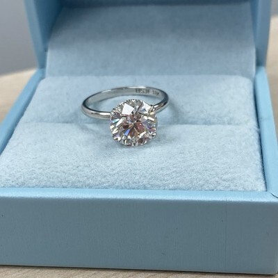3.02 KT Igi Laboratrio Cresciuta F-VS1 Diamante Taglio Rotondo Anello 18k Bianco