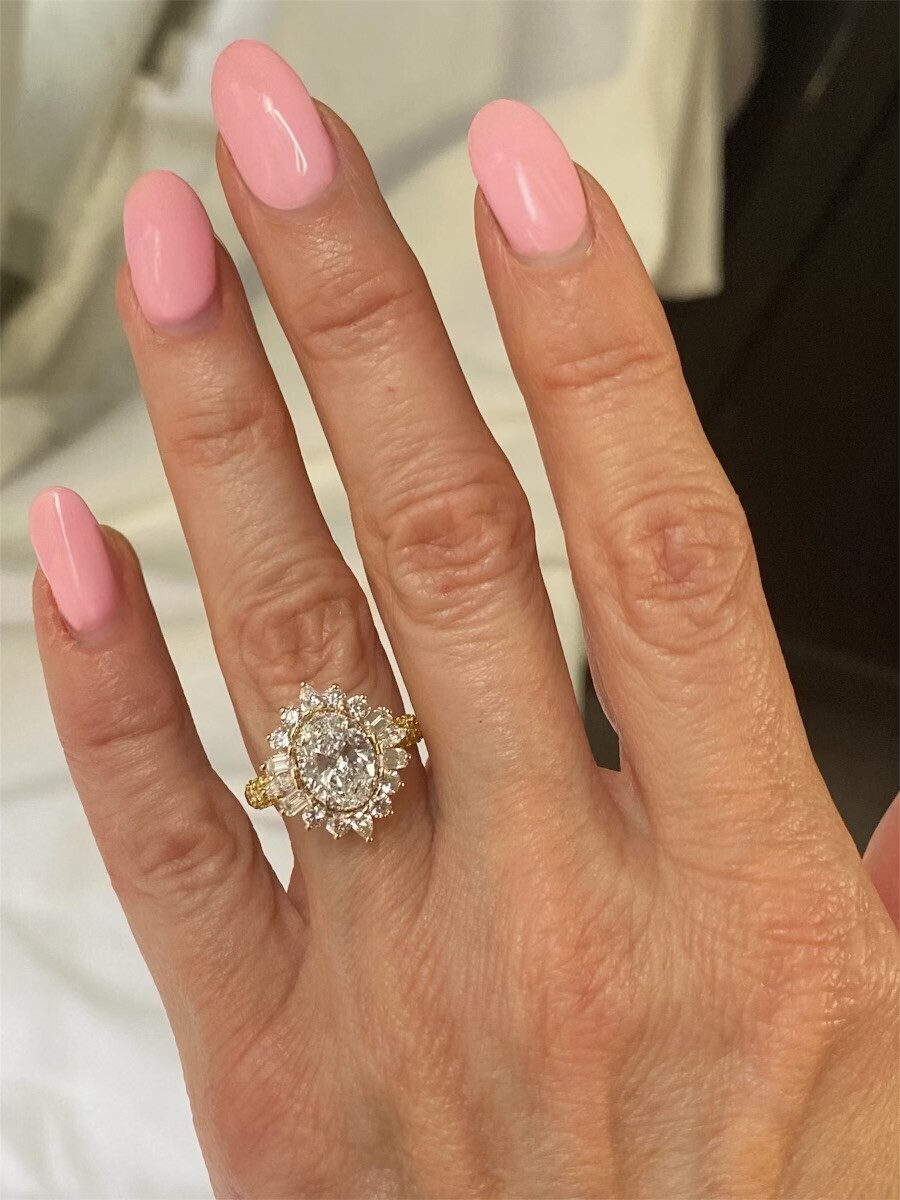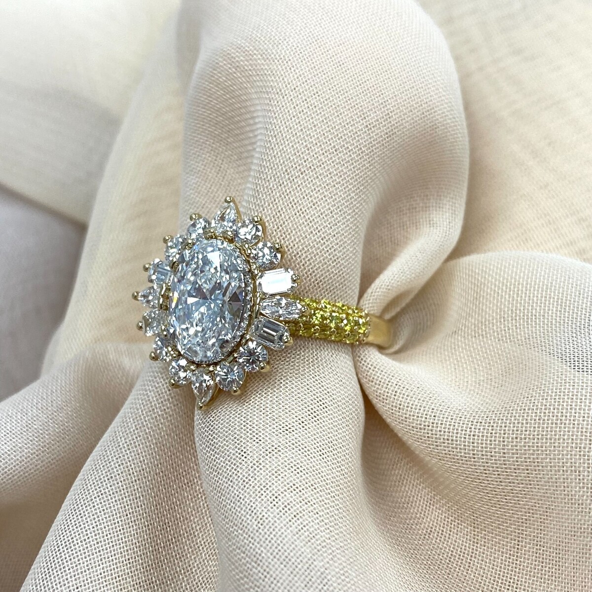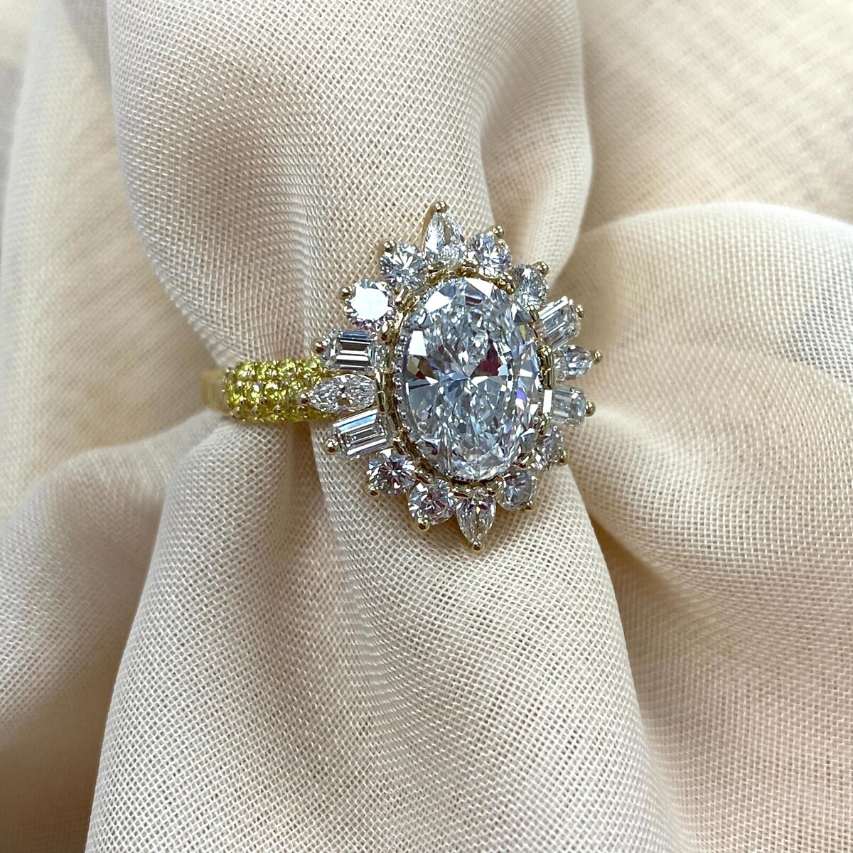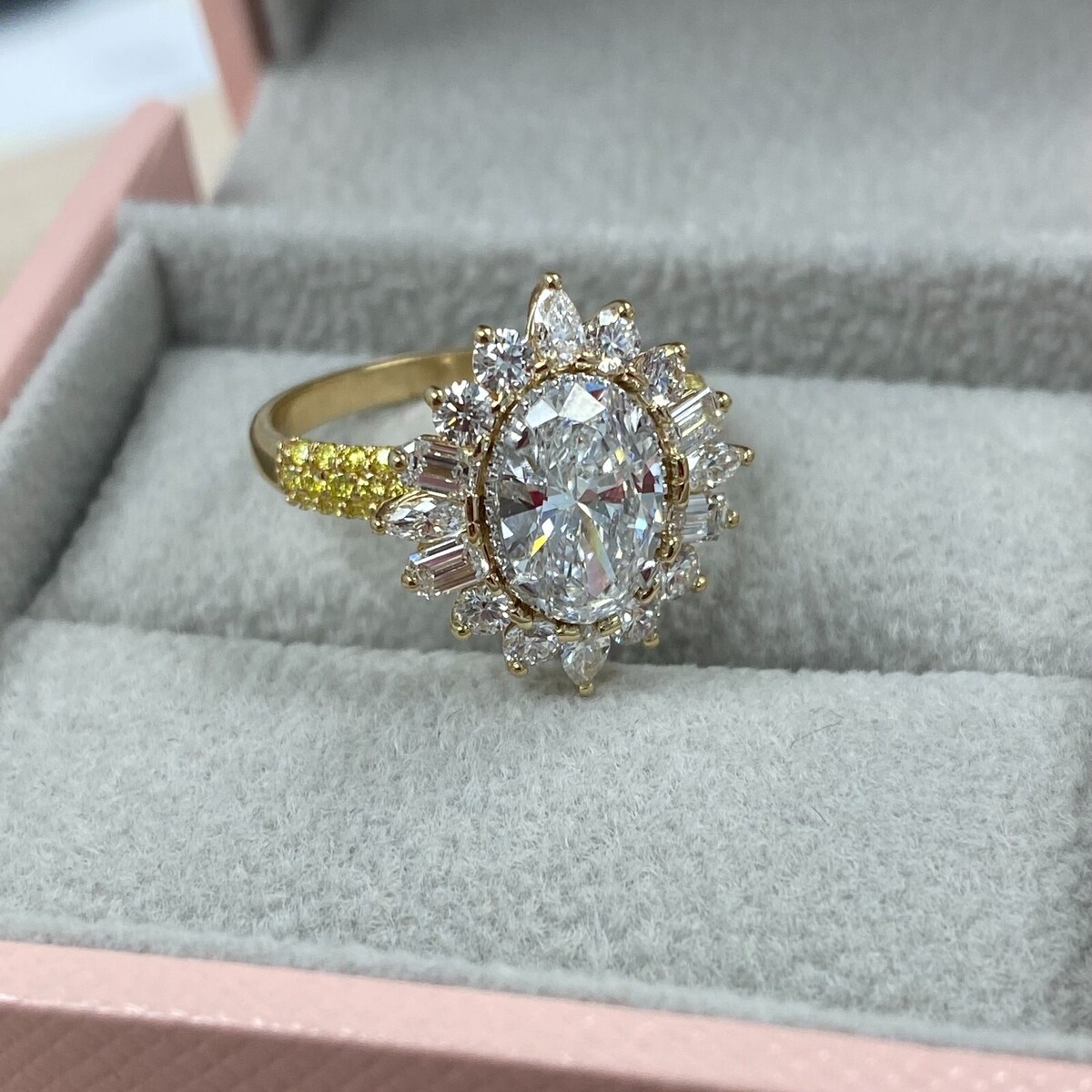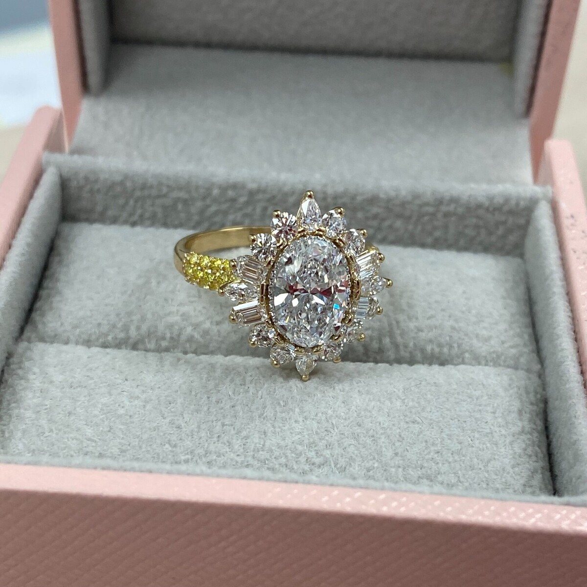 Sunburst 2.84CTW OVAL CUT D-VS1 IGI Lab Grown Diamond Engagement Anneau 14K Gold