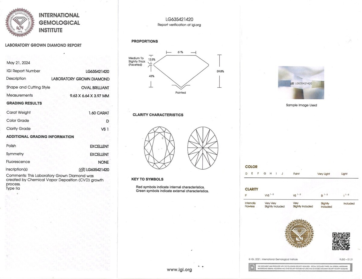 Bague De Fiançailles En Diamant Lab Grown IGI Oval Cut D-VS1 2,84Ctw En Or 14K